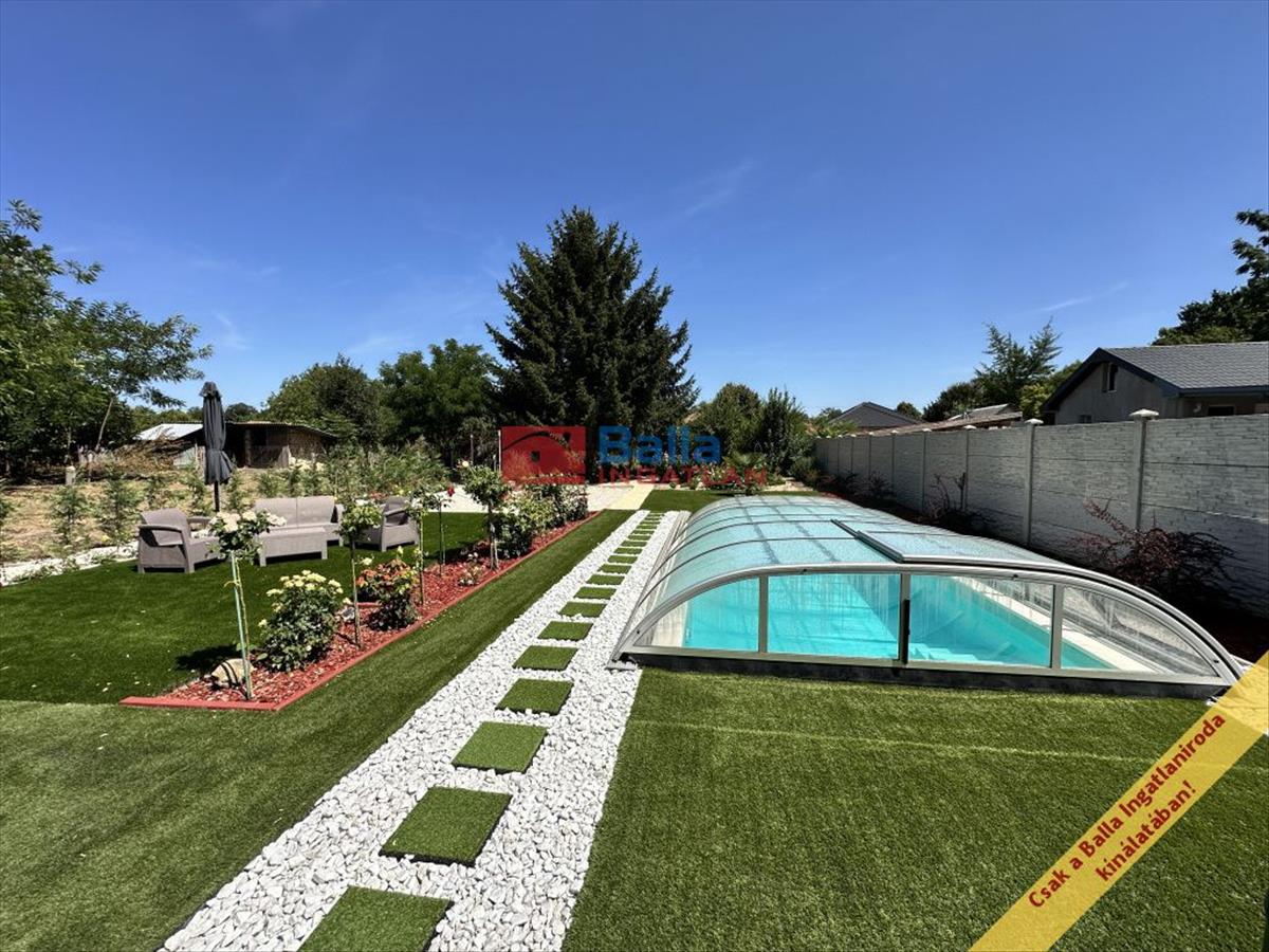 Kert és pihenés: a házat egy csodálatos, gondozott kert veszi körül. Az előkertet levendulabokrok díszítik, a hátsó, rendezett kertben pedig egy 5, 5 x 3, 5 méteres, 1, 30 m mély, fedett medence nyújt tökéletes kikapcsolódást a forró nyári napokon.