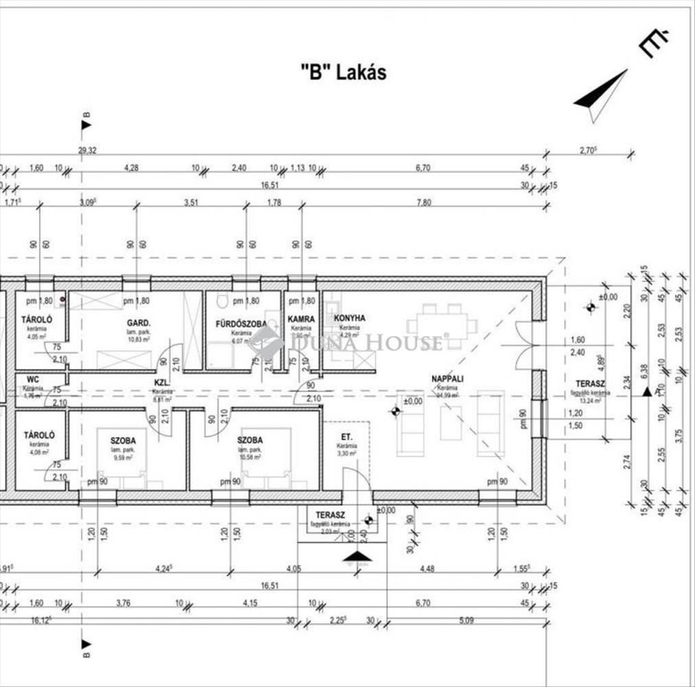 - Tájolás:DNY