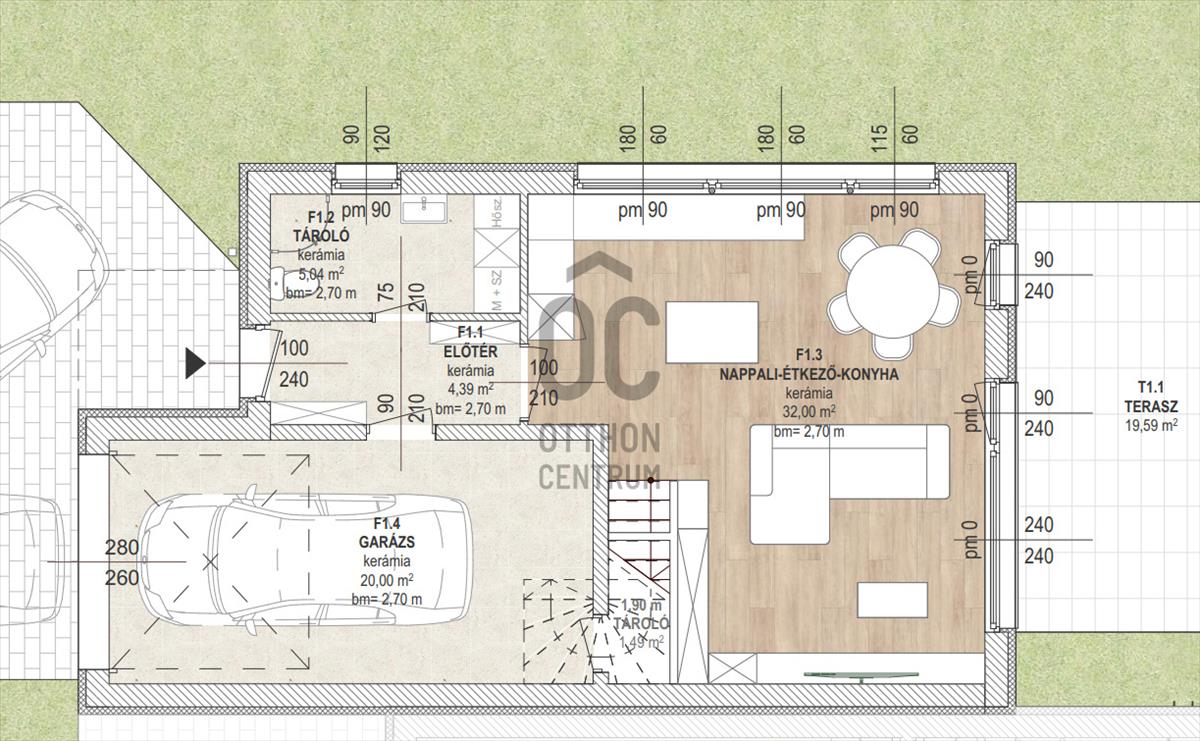 - nettó alapterülete 106, 43 négyzetméter teraszokkal és garázzsal 123 nm