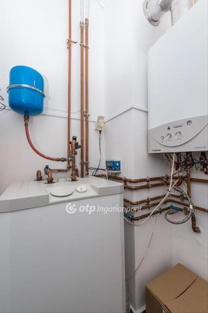 A ház fűtését és melegvíz-ellátását cirkó kazán biztosítja, a nappaliban pedig klíma gondoskodik a megfelelő komfortérzetről.