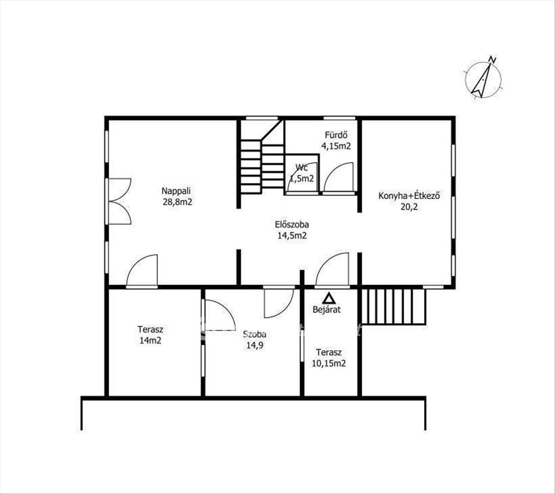 A bejárati szinten előszoba, tágas nappali, konyha, étkező, egy hálószoba, fürdőszoba és külön wc található. a nappaliból, hálószobából nyíló teraszról, valamint a konyhából is lenyűgöző kilátás nyílik a Pilis tájaira.