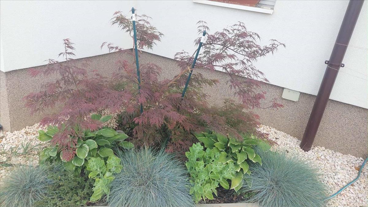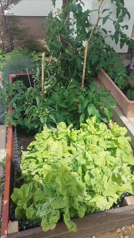 Az ingatlanhoz egy 450 m²-es, gondozott kert tartozik, amely füvesített, virágoskerttel, magas ágyásokkal, málnával és szederbokrokkal, fákkal, valamint kerti sütőhellyel rendelkezik. a pihenést két terasz szolgálja: egy kb. 10 M²-es térkövezett terasz a tetőszerkezet alatt, valamint egy kb. 16 M²-es, pergolával fedett fa terasz. a telken továbbá egy térkövezett kocsibeálló található, ahol két autó kényelmesen elfér egymás mögött.