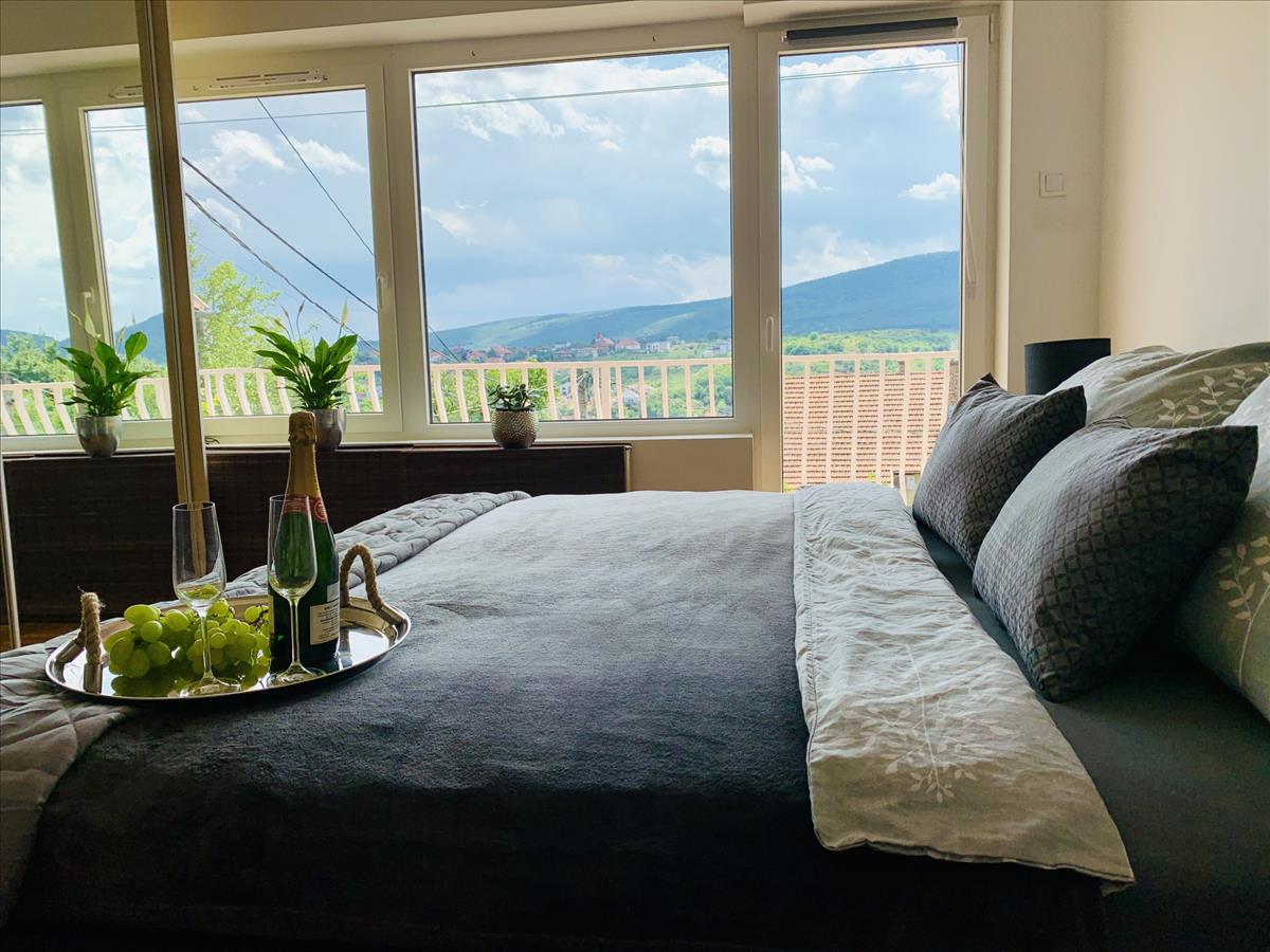 - a kilátásból adódóan a lakás hegyen található, így kocsival rendelkezőknek kényelmesebb a megközelítése
