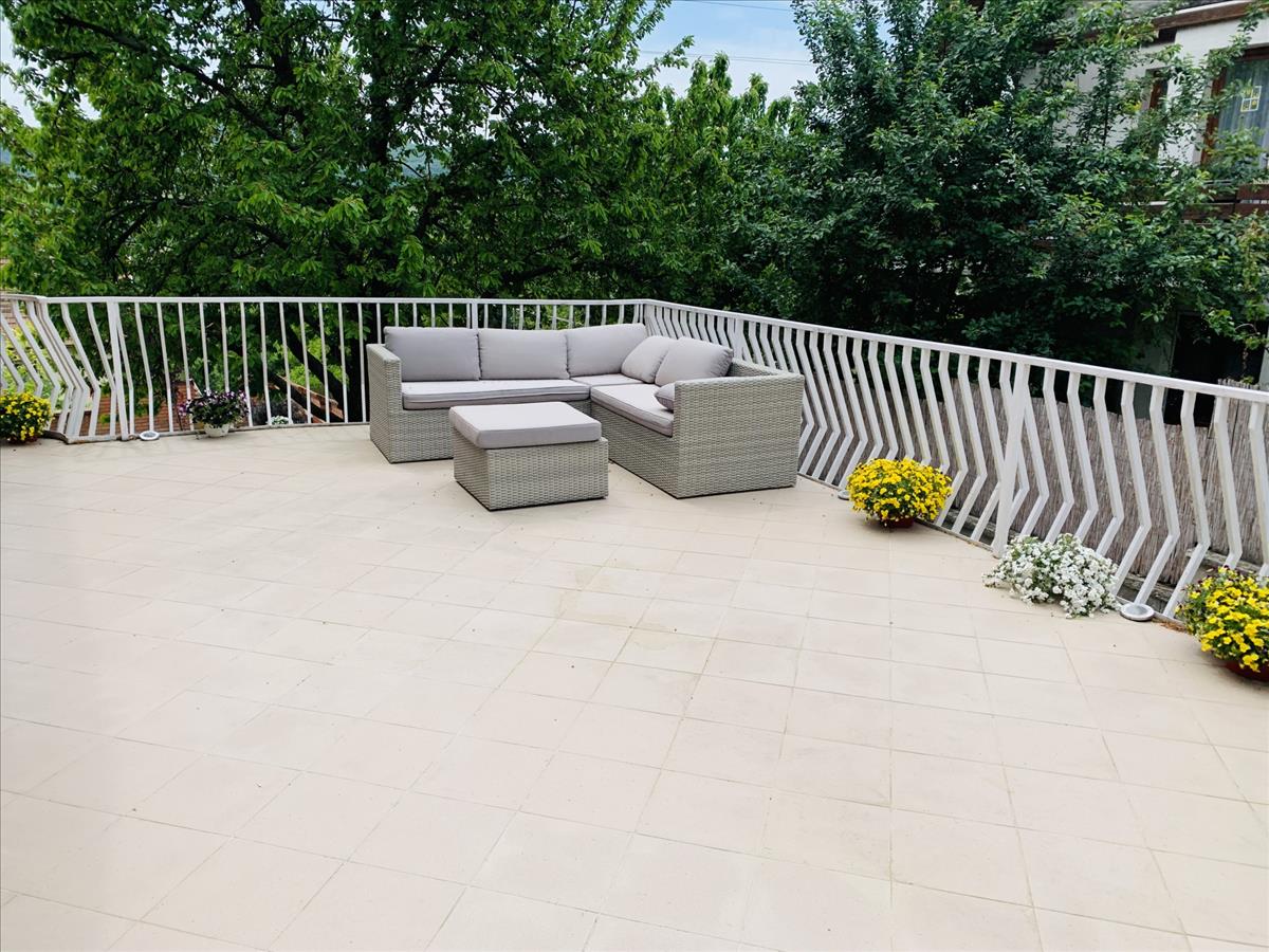 Az emeleti részen (70 nm ) nappali + 2 háló, konyha, fürdő és tároló helyiség található 60 nm -es panorámaterasszal és a hátsó 20 nm -es grill terasszal, sziklakerttel és térkővel lerakva.