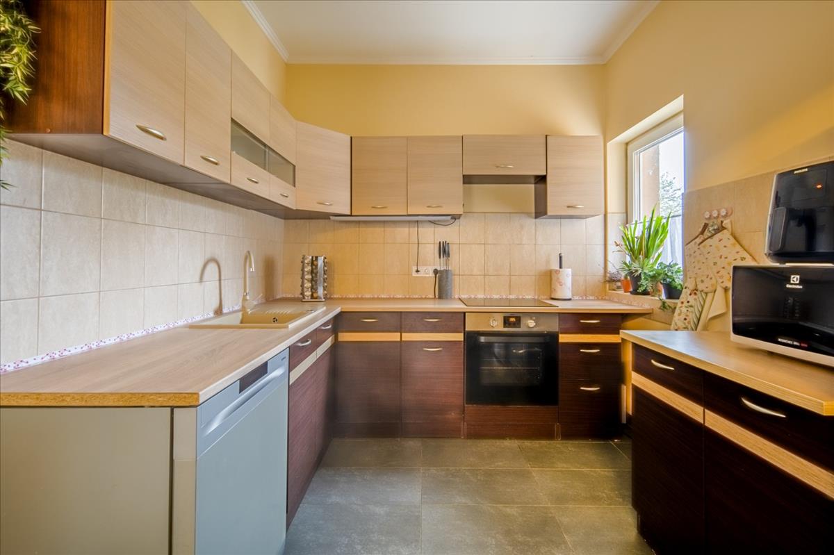 Az ingatlan a 22 m²-es garázson keresztül kapcsolódik a szomszédos épülethez. a nagyméretű teraszra a nappaliból lehet kilépni, és a telek elrendezésének köszönhetően az ingatlan szinte teljesen körbejárható.