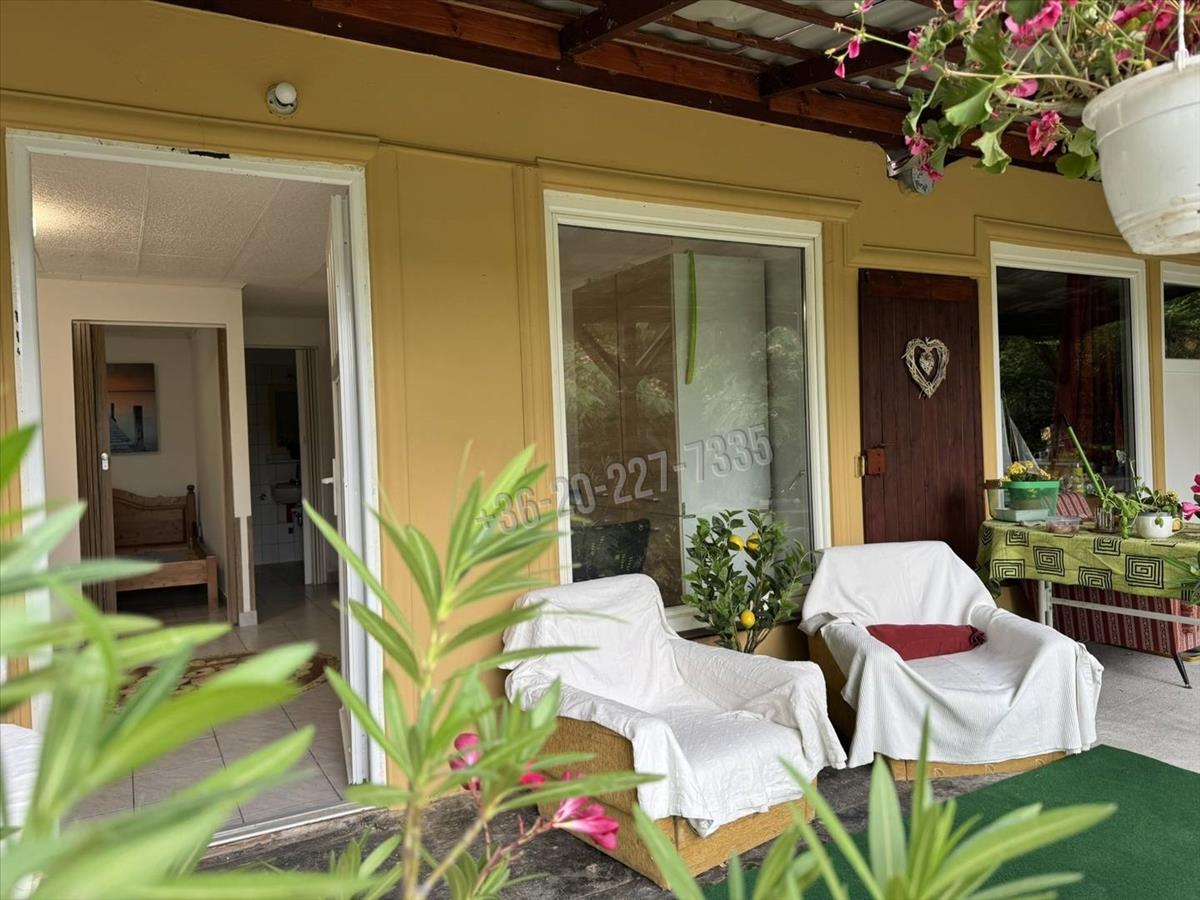 A házra tavaly új tető került, a fedett terasz pedig úgy lett kialakítva, hogy igény esetén könnyedén beépíthető, így további lakótér vagy télikert nyerhető.