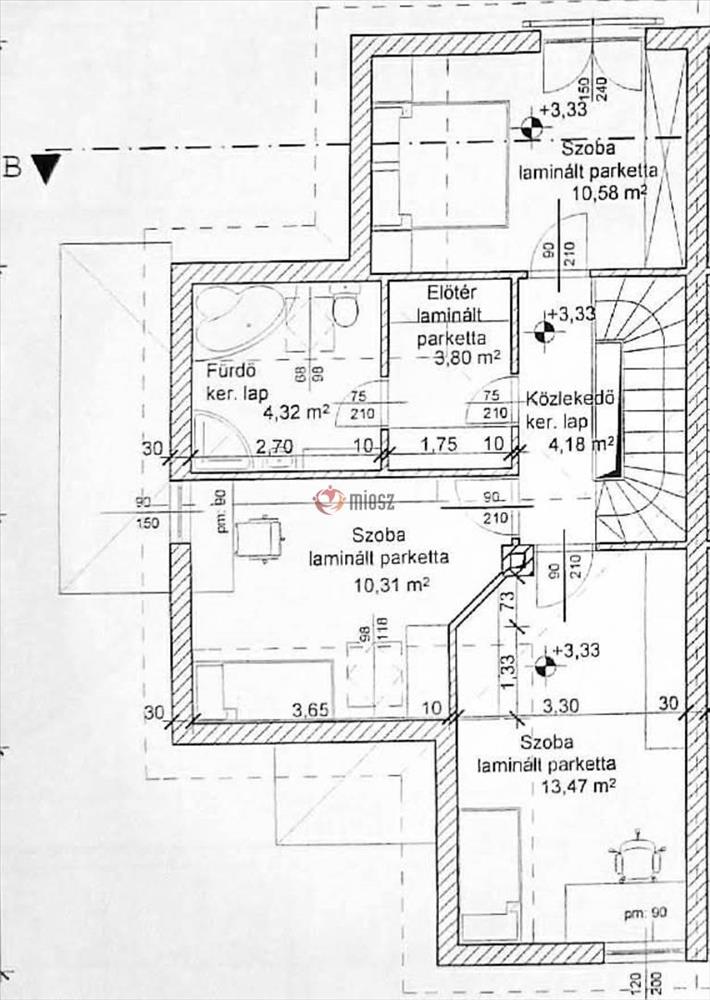 Az emeleten három külön nyíló, kényelmes méretű szoba található, amelyek jól berendezhetők akár gyerekszobának, hálónak vagy dolgozószobának is. a helyiségek kellemesen világosak, a nyári melegben pedig a klíma gondoskodik a komfortos hőmérsékletről. Ezen a szinten egy tágasabb fürdőszoba is kialakításra került káddal, zuhanyzóval és WC-vel, ami nagy segítség a reggeli készülődésnél.