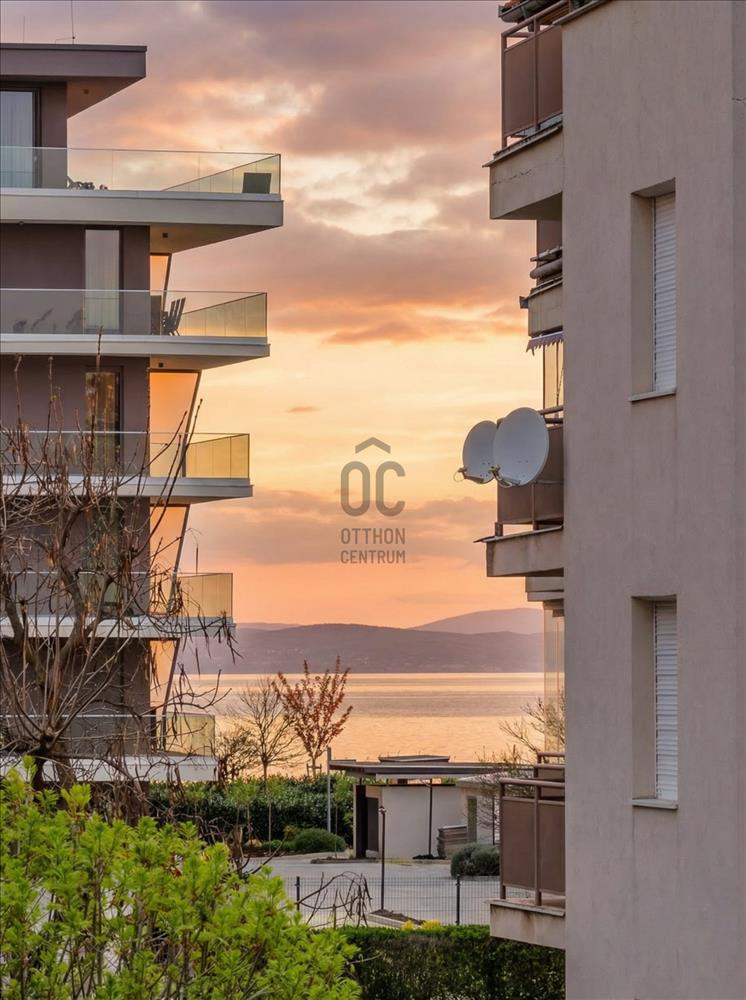 Nézet: városi, zöldre néző és részben tóra néző panoráma