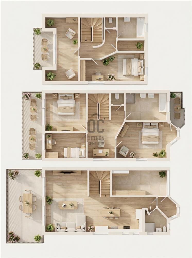 - 1 szint: 66, 8 nm + 16 nm erkélyek = 82, 8 nm