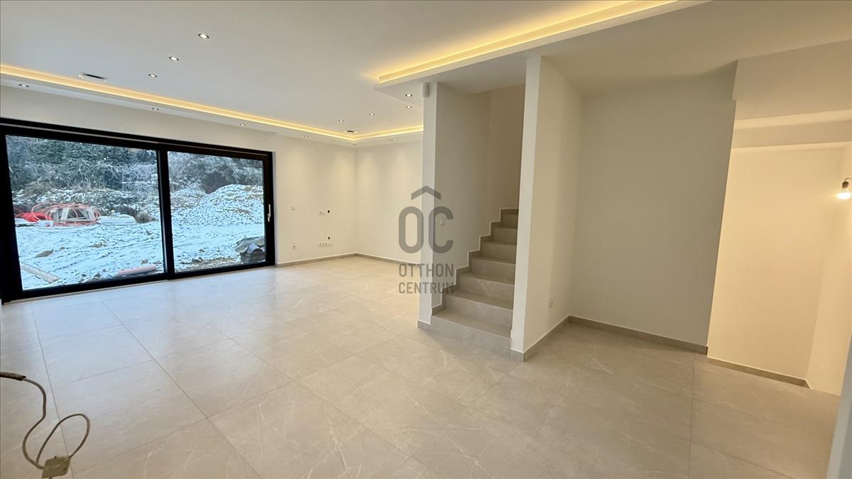 Eladó Solymár Hutweide kedvelt részének, újonnan aszfaltozott utcájából nyíló zsákutca végén, új építésű, exkluzív, nagyon intim, mintegy 180nm-es 360nm saját kerttel rendelkező, teljesen elszeparált, önálló helyrajzi számmal bíró ikerházfél.Kertkapcsolatos, páratlan adottságokkal bíró, exkluzív megjelenésű, rendkívül magas műszaki tartalommal, újépítésű ikerház. Az épület alatt nagyméretű garázs tárolóval, a földszinten nappali közvetlen terasz és kertkapcsolattal, konyha-étkező, közlekedő, hálószoba saját fürdőszobával valamint mellékhelyiség beosztású. Az emeleten két nagyon kényelmes méretű háló szoba, tágas fürdőszoba és gardrób található. a fűtést és hűtést a legkorszerűbb hőszivattyús padló és mennyezet rendszer biztosítja, a nyílászárókon elektromos, alumínium redőnyök szúnyoghálóval kiegészítve. Az ikerház kimondottan napos és világos, panorámás a nap teljesen körbesüti. Az öntözőrendszerrel ellátott kert alapvetően sík, új pázsittal és örökzöldekkel lesz tarkítva. Buszmegálló és bevásárlási lehetőség, óvoda és egyáltalán maga a Templom-tér mintegy 10-perces gyalogos sétára található.