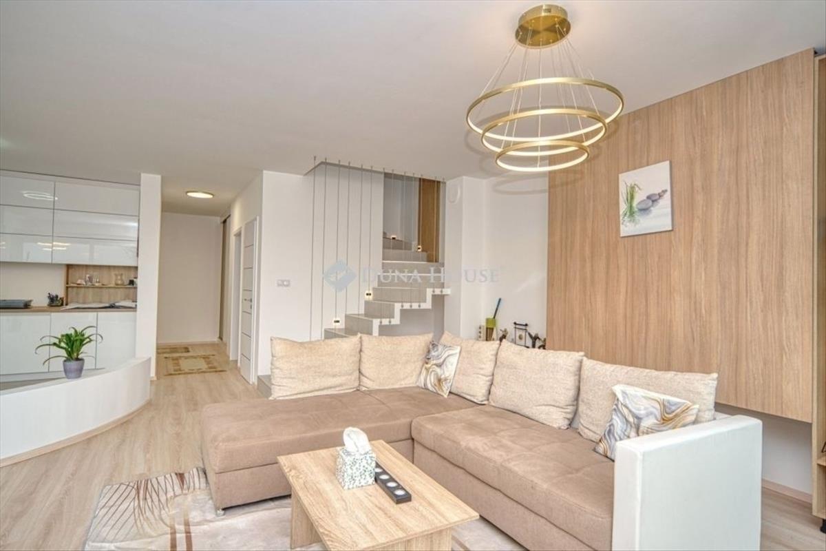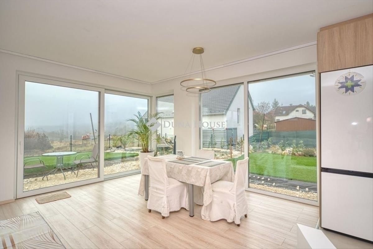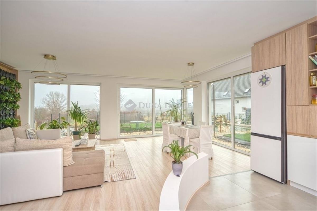 Örök panorámás, minden igényt kielégítő új építésű modern stílusú ikerház. Solymár kedvelt részén: Györgyhegyen, nyugodt környezetben, közvetlen Natura 2000 besorolású terület mellett, a hegyekre néző örök panorámával eladó egy új építésű két szintes ikerház. Ha csendes környezetben és természetközeli életstílust keres, ne keressen tovább! Ez a 146 négyzetméteres, modern stílusú ikerház Solymár egyik legszebb részén található, ahol a nyugalom és a zöldövezet összetalálkozik. a gondosan megtervezett kert mérete 400 nm , prémium gyepszőnyeggel borított, öntözőrendszerrel és robotfűnyíróval telepített. Az úszótó 6x4 méteres, kb. 100 Vízi növénnyel, és csobogó vízeséssel. Az ikerház kiváló elosztással rendelkezik, praktikus kialakítással, emeletenként fürdőkkel, tágas hálószobákkal és intim, kert kapcsolatos terasszal. Az alsó szinten az előszobába belépve azonnal magával ragad a kifinomult ízléssel megálmodott otthon, ahol egy 43 nm -es amerikai konyhás nappali fogad Minket. a prémium minőségű konyhabútor, minden háziasszony álma. Ezen a szinten helyett kapott még egy fürdőszoba, illemhely. Az emeleti szintre kényelmes lépcsőn jutunk fel, három hálószoba, fürdőszoba+wc, várja új tulajdonosait. Az emeleti szobákból élvezhetjük Solymár természeti adottságait az örök panorámán keresztül. a családi otthon 2025-ben épült, közel egy éves látványtervezői munka után nyerte el mai formáját. Az alábbi mondattal jellemezném a házat:Az elegancia a stílus és a minőség találkozása. a vételár ár tartalmazza a gépesített beépített konyhabútort, a teljes befejezést, a térkövezést, kapu kialakítását, és a maradék bútorok befejezését, valamint a terasz kialakítását es burkolását. Az ingatlan Solymáron, csendes környéken található, új építésű ingatlanok szomszédságában, elvehetetlen panoráma, kimagasló infrastruktúra, tiszta levegő és remek közlekedési megoldások jellemzik a környéket. Ez az ikerház tökéletes választás lehet gyermekes családok részére, kialakításának és felszereltségének köszönhetően ebben az állapotában szinte azonnal beköltözhetően. Ne hagyja ki ezt a fantasztikus lehetőséget! Várom hívását! Hitel.hu - Hasonlítsa össze a bankok lakáshitel ajánlatait