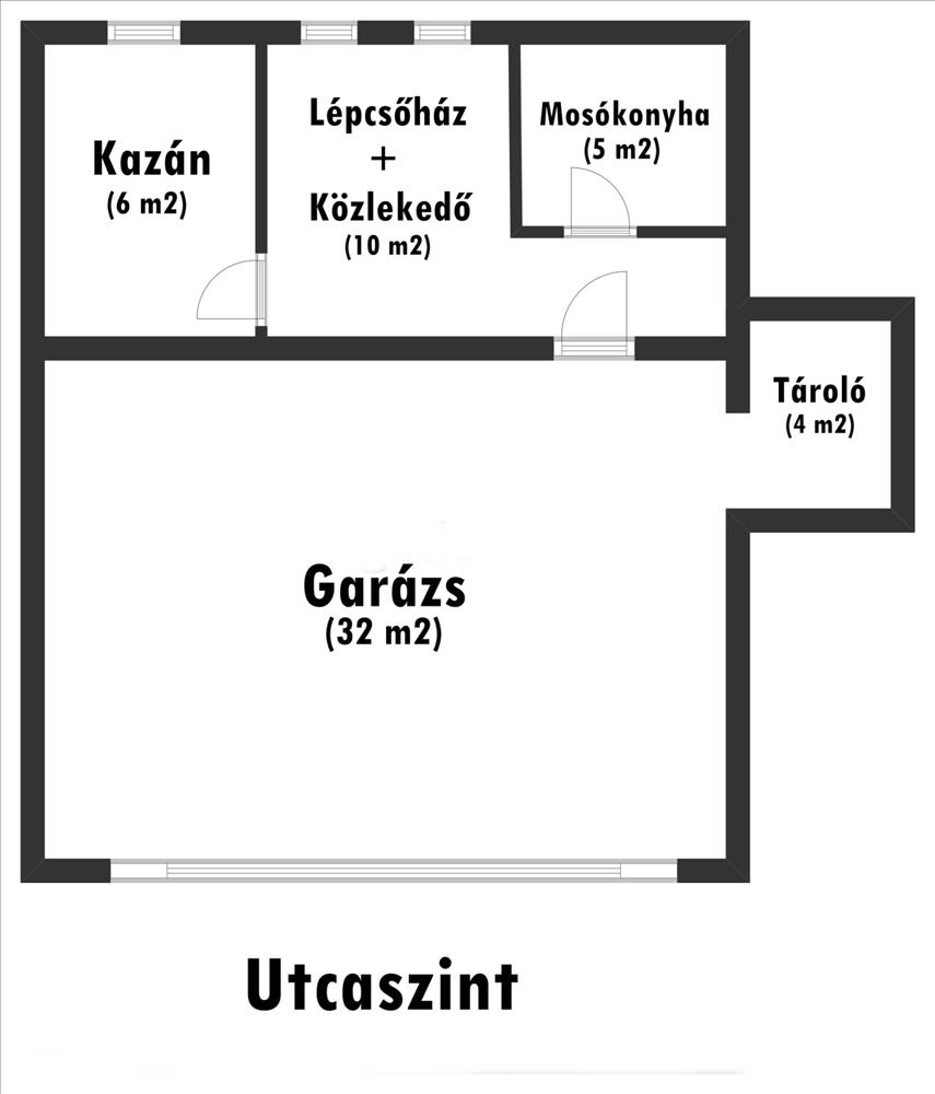 Alsó szinten dupla garázs, tároló, mosókonyha és kazánház található.