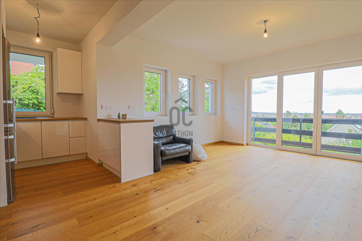 Földszinten: amerikai konyhás nappali, ahonnan lélegzetelállító panoráma nyílik Sopronra, tároló és külön WC