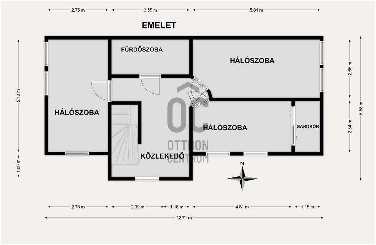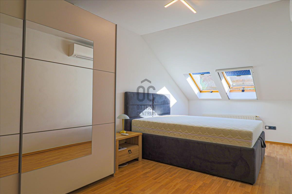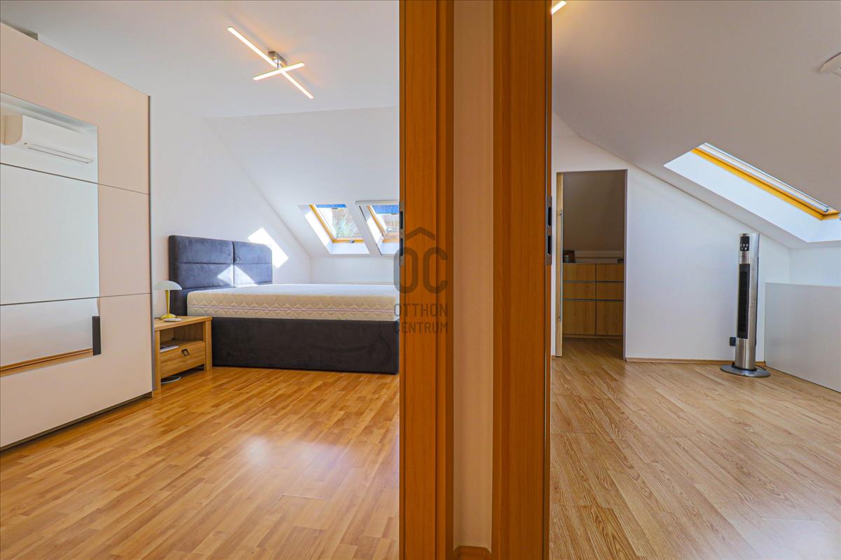 - Felső szint: tágas közlekedő, 3 külön bejáratú hálószoba, fürdőszoba és egy különálló wc.