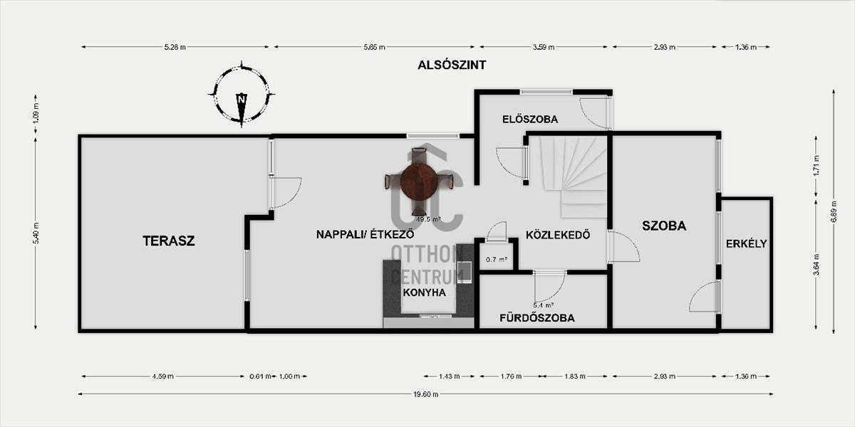 - Földszint: előszoba, kamra, hálószoba saját erkéllyel, fürdőszoba, valamint egy teraszkapcsolatos, tágas amerikai konyhás nappali, amely a családi élet központja lehet.