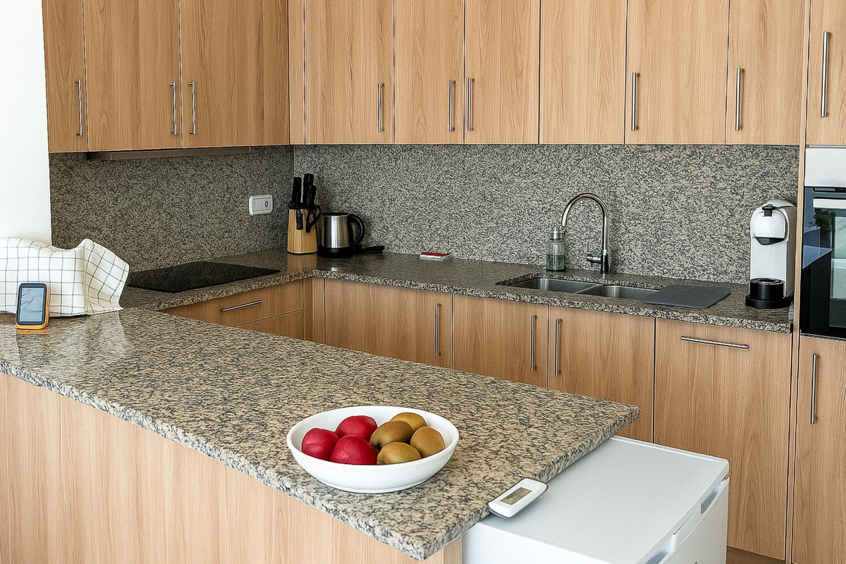 A főházban tágas nappali és étkező található, egy teljesen felszerelt nyitott konyha mellett mosogatógép, sütő, Siemens indukciós tűzhely és egy nagy hűtőszekrény. a konyha közvetlen hozzáférést biztosít egy nagy 150 m ² -es terasz, ideális a mediterrán éghajlat és a szabadban. \ N