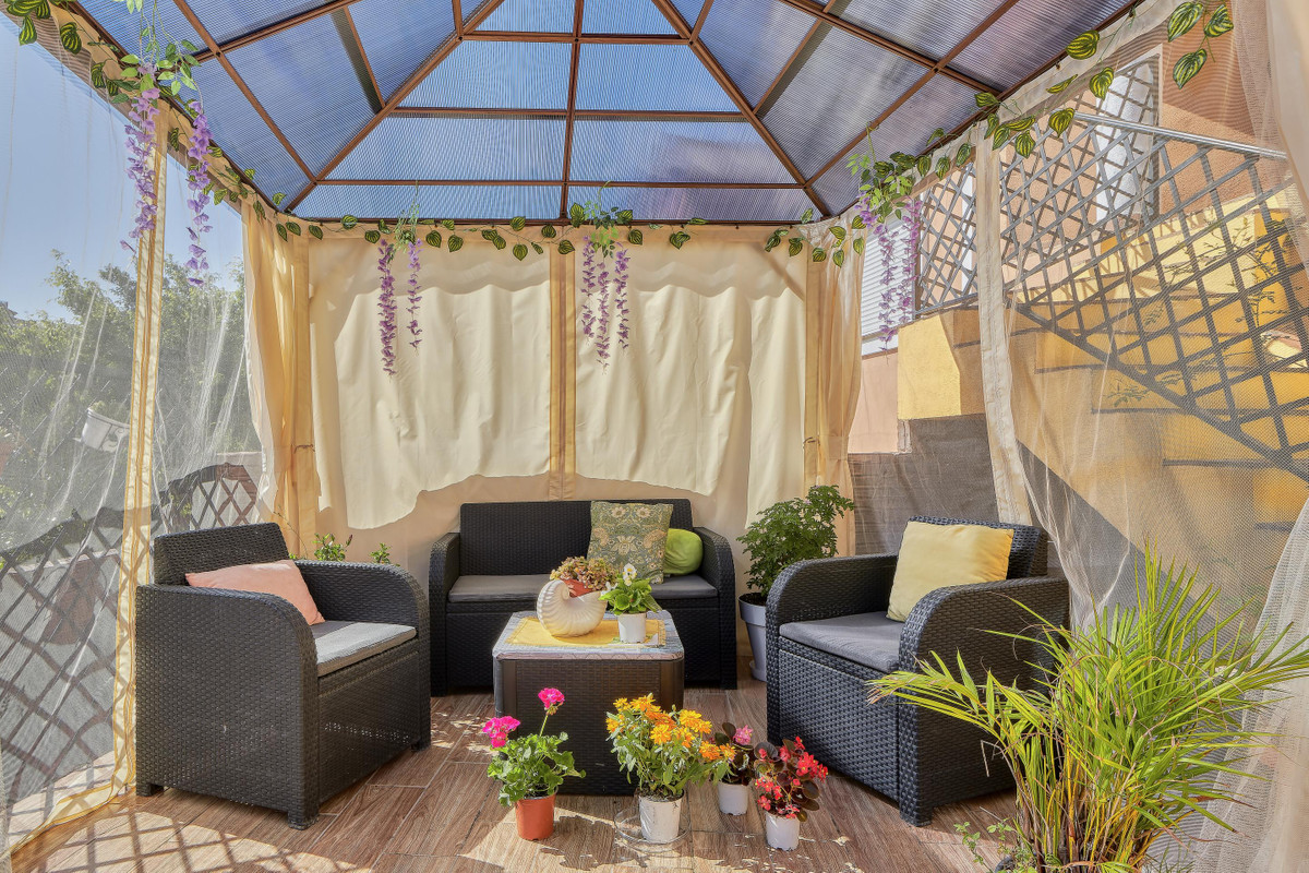 ? ? 75 m2 saját szabadtéri tér tornác és kert között, ideális a mediterrán éghajlat egész évben