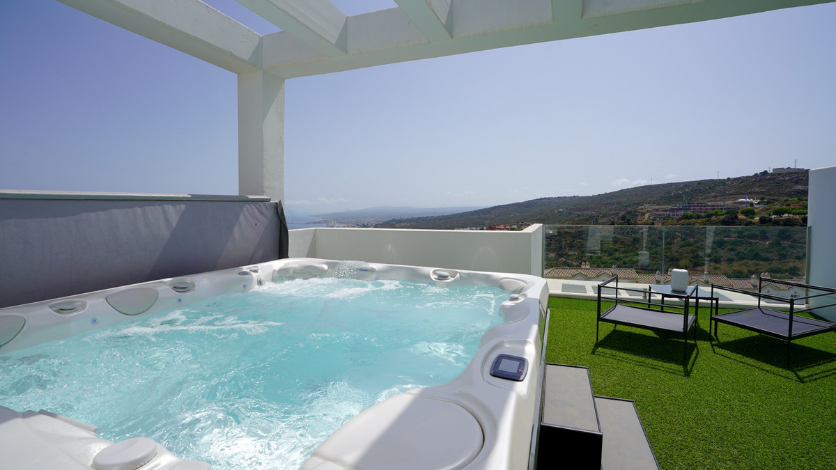 Ez a gyönyörűen berendezett 3 hálószobás félszobás ház a délutáni Bahía de las Rocas terület Manilva, tökéletesen elhelyezve között Sotogrande és La Duquesa. Egy biztonságos zárt közösségben, ez a déli fekvésű ingatlan lélegzetelállító panorámás kilátást nyújt a Földközi-tengerre, Gibraltárra, sőt Afrika északi partvonalára.