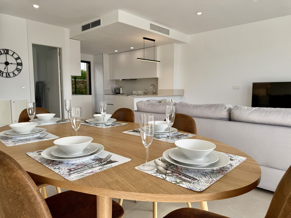 A fő nappali nyitott terv, ötvözi a konyha, étkező, és társalgó, közvetlen hozzáférést biztosít egy tágas terasz és nyitott kilátás nyílik a környező területre.