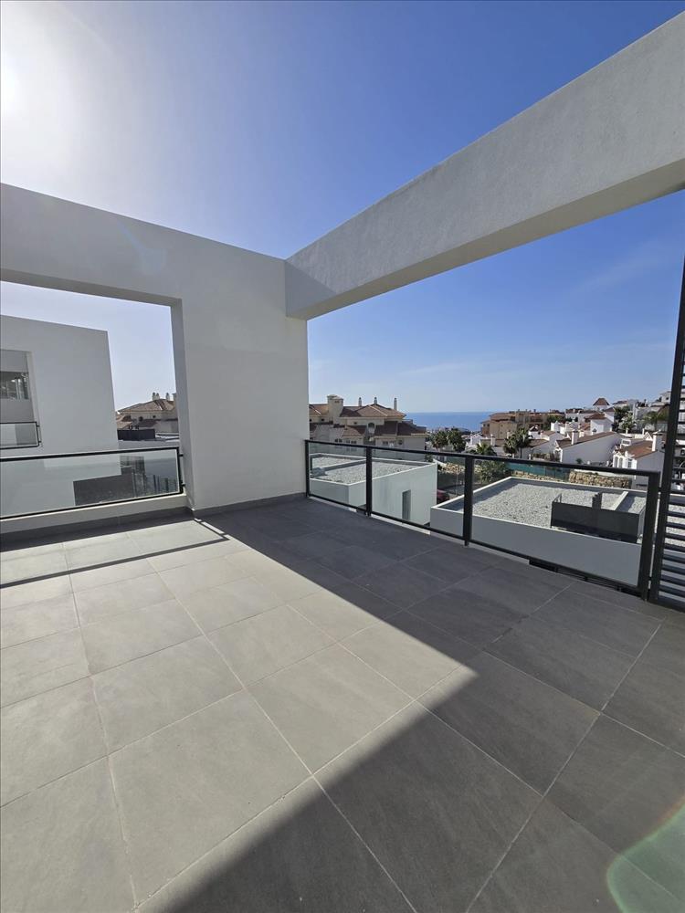 Új építésű félpanziós ház eladó Riviera del Sol, 5 perces autóútra a bájos és élénk tengerparti falu Cala de Mijas, ahol & apos; talál egy széles körű éttermek, szupermarketek, iskolák és a strand, és 30 percre a Málaga repülőtér.