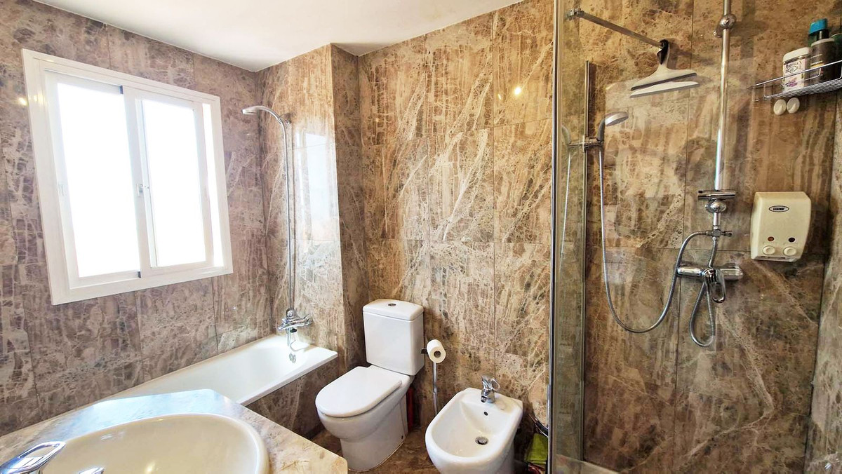 Nagyon szép, részletezett ház tenger views eladó Estepona! ! Ez a sarokház a Galera Park délutáni, biztonságos, privát fejlesztésében található. 200 Méterre található a tengerparttól, elhelyezkedése a fejlesztésen belül megvédi a parti út zajától. a ház négy emeleten épült. Minden emeleten van lift. Az első szint a saját mélygarázs, ahol két jármű könnyen parkolhat. a tulajdonos kicserélte a garázsajtót egy sokkal jobb minőségű automatára, amikor megvette az ingatlant. a második emeleten áll egy gyönyörű nappali / étkező, egy teljesen felszerelt félig nyitott konyha, és egy vendég wc. a nappali kivezet egy bájos terasz, egy kis kilátás a tengerre, és egy nagy, kellemes magán zöld terület, kilátással a medencére és a tengerre. Az első emeleten van három hálószoba és két fürdőszoba. a hálószobában van egy ensuite fürdőszoba, és kivezet egy terasz, amely hozzáférést biztosít a negyedik emeleten, a szolárium, ahonnan megfigyelheti a környéket, és élvezze a csodálatos kilátás a tengerre. Láthatja a tengert a nappaliból és a hálószobáról is. a ház mindig is nagyon jól karbantartott a tulajdonosok, akik még hangszigetelt oldalfalát az egyetlen szomszéd. Sok üzlet van a közelben, köztük két nagy szupermarketek! Ez az ingatlan részben bútorozott. Minden készülék marad. Ideális ingatlan egy családnak, akár elsődleges lakóhelynek, akár nyaralásnak.