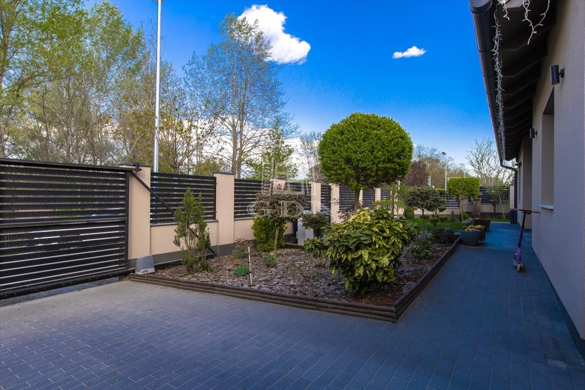 A 880 nm -es területet két elektromos nagykapun keresztül közelíthetjük meg autóval két utcáról, az egyik beálló a garázsba, míg a másik beálló a fedett beállóhoz biztosít bejutást. Udvaron található egy 80 nm -es fedett terület, melyből 25 nm hátsó grillező terasz vagy fedett beálló, a maradék épület Finn szauna, illetve tároló. Tervezésnél gondoltak a nyári hőség elviseléséhez, egy 3x6 méteres medencére komplett gépészettel, hőszivattyúval, külön játszótérre a gyerekeknek, illetve egy csepegtető rendszerrel ellátott 6 nm -es Leier magaságyásra is. Az udvar szépségéért öntözőrendszer felel amit fúrt kút táplál, a kényelemért pedig egy robot fűnyíró dolgozik.