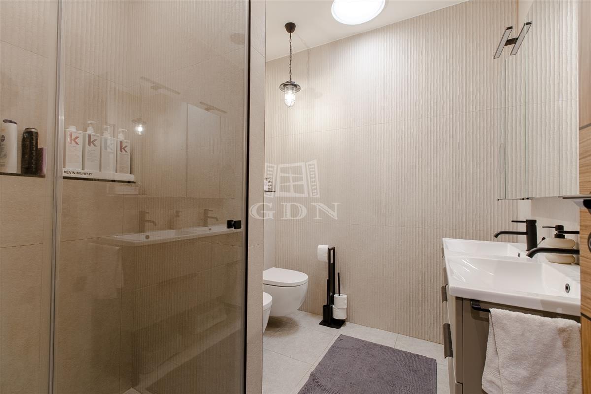 Kényelem és minőség jellemzi az egész házat belülről, prémium anyagok és minőségi egyedi gyártású falburkoló megoldások, gránit pultos praktikus konyhával, melyből a szülő egyaránt rá lát az udvarra és a nappaliban játszó gyermekekre is. a dupla fürdőszoba lehetőséget ad a gyermekeknek a kádas fürdőszobára, illetve a szülői hálószobában lévő fürdőszoba pedig a felnőttek intimitására.