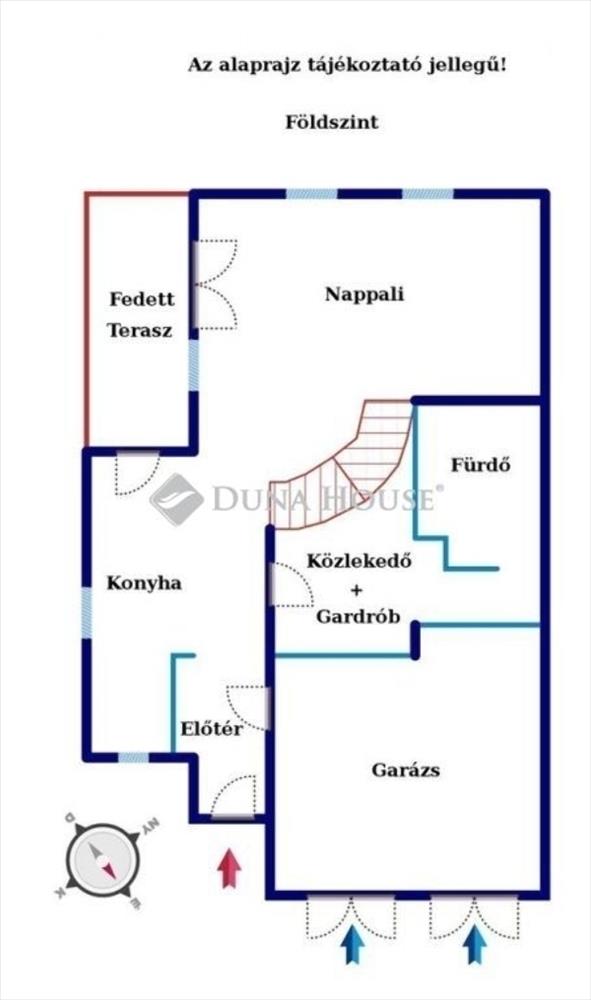 Az alsó szinten belépéskor kellemes belső tér fogad, az előszobából nyílnak a helyiségek. Balra a konyha-étkező, jobbra gardrób, fürdő, mellékhelyiség, mely kézmosóval felszerelt. Az előszobából tovább haladva a rendkívül hangulatos, jó fényviszonyokkal rendelkező tágas nappali tárul elénk, melynek dísze a kandalló. a nappali és a konyha-étkező egy teret alkotnak, mindössze egy oszlop választja el őket. a konyha gépesített, Bosch gépekkel felszerelt. a nappaliból kiléphetünk a fedett - és nyitott teraszra.