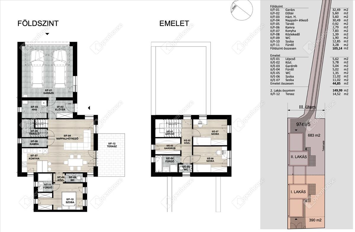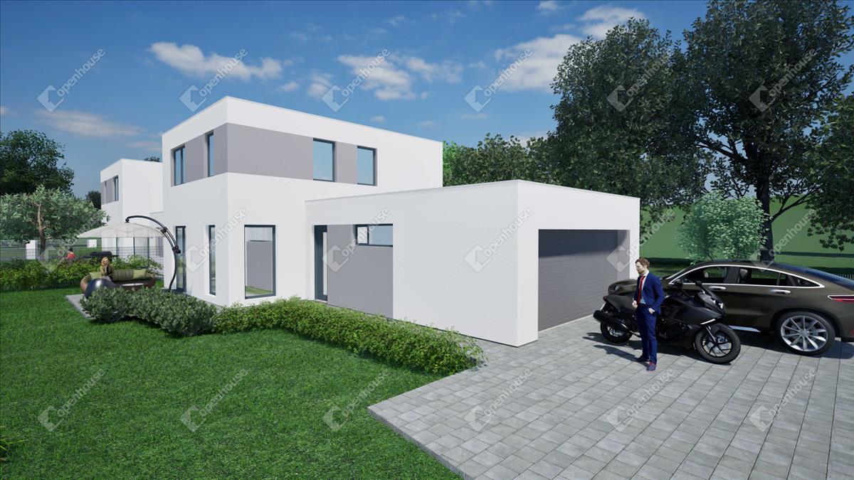 Az ingatlanról: Az ingatlan minőségi alapanyagok felhasználásával és a modern technológia alkalmazásával készül, a lehető legmagasabb színvonalon, minimás stílusban. a nettó alapterület 118m2, ami magába foglal egy hatalmas amerikai konyhás nappalit, 3 hálószobát, 2 fürdőszobát, 2 WC-t, 2 gardróbot, egy kamrát, egy külön tárolót, és egy gépészeti helyiséget. Továbbá az ingatlanhoz tartozik egy 33m2-es dupla garázs elektromos garázskapuval és egy saját használatú 400m2-es kertrész is.