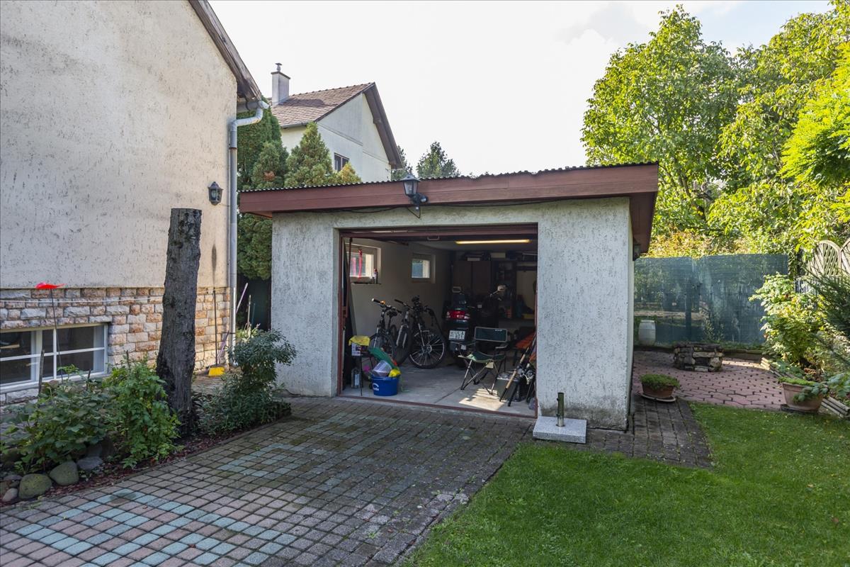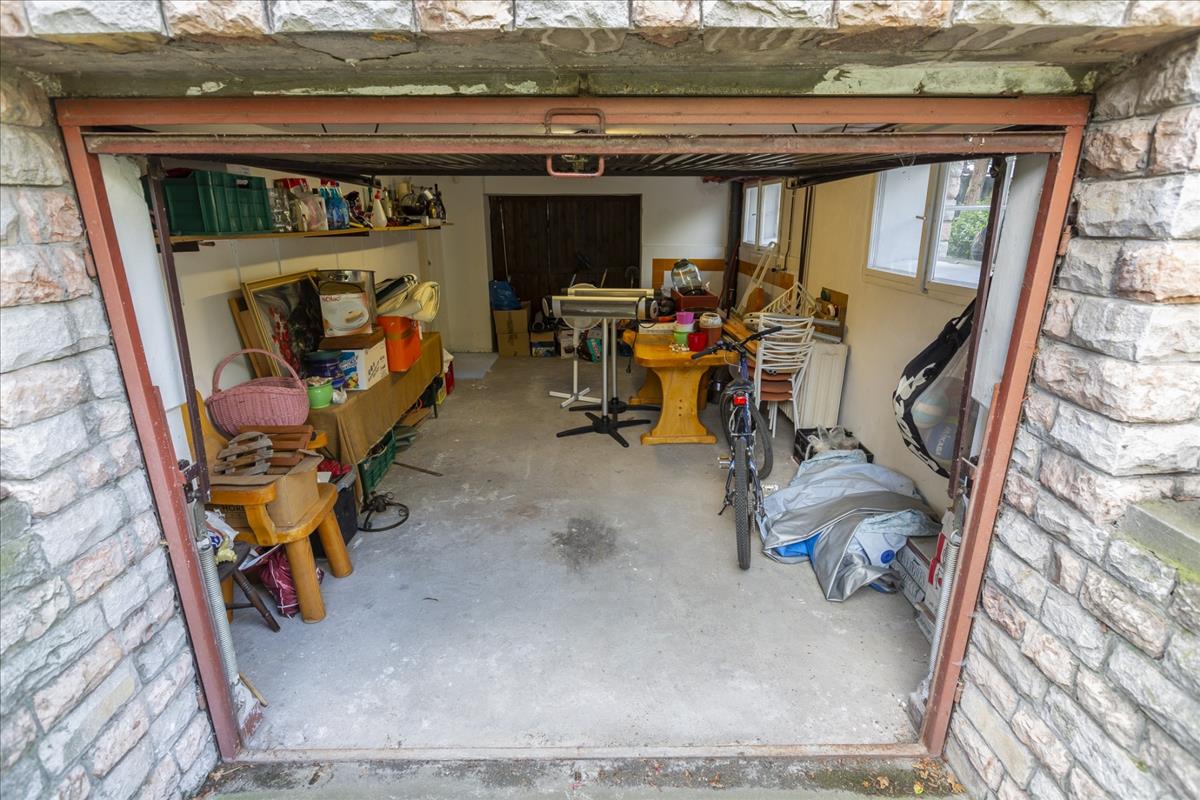 Gépkocsival 2 garázsban parkolhatunk, az egyik a ház alsó szuterén részén a másik az épület mellett található.
