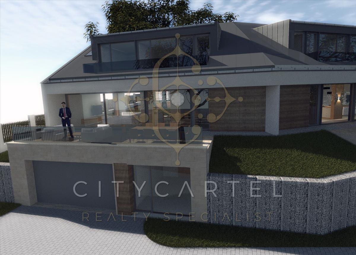 Szentendrén eladó modern stílusú 3 szintes ikervilla.
