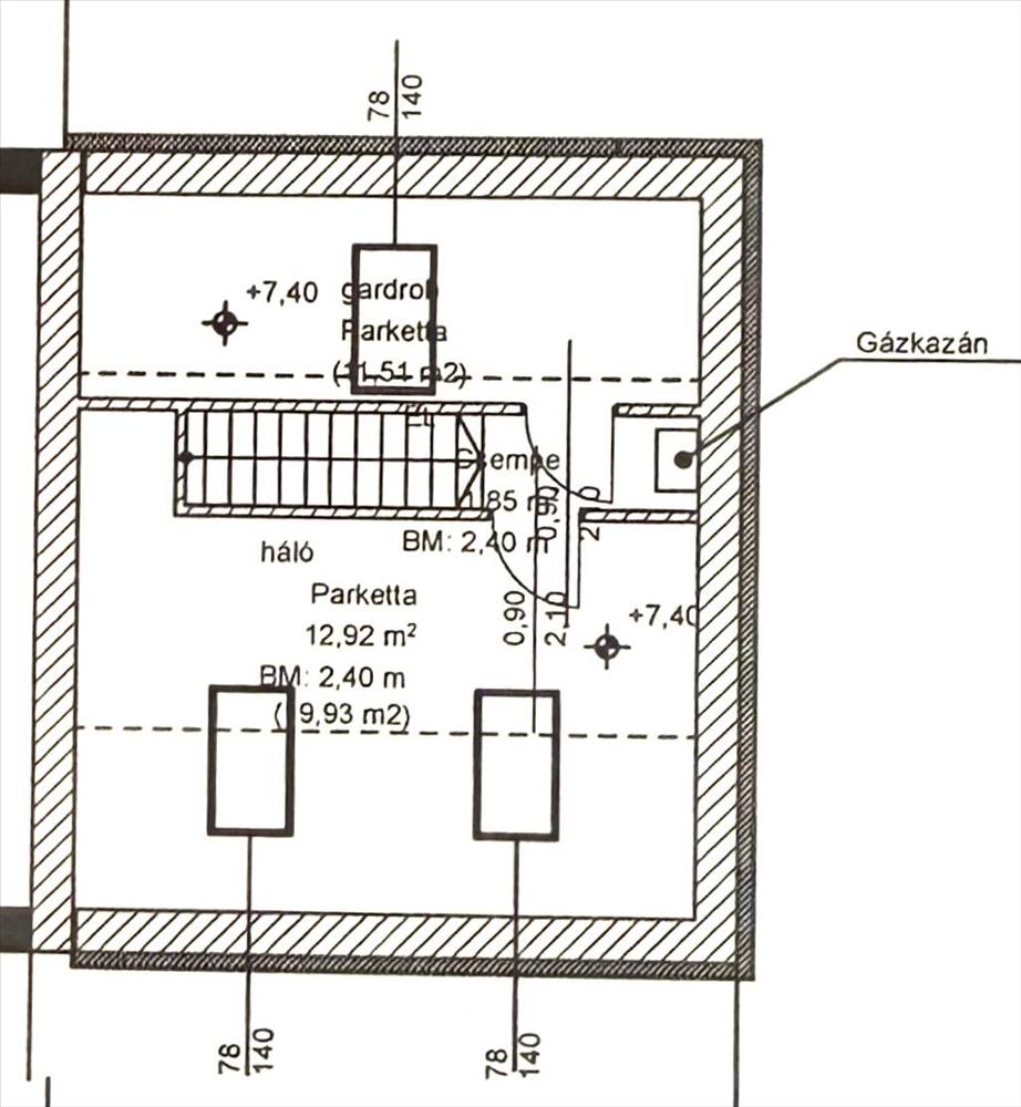 - Falazata: 40 cm-es tégla + 15 cm eps szigeteléssel