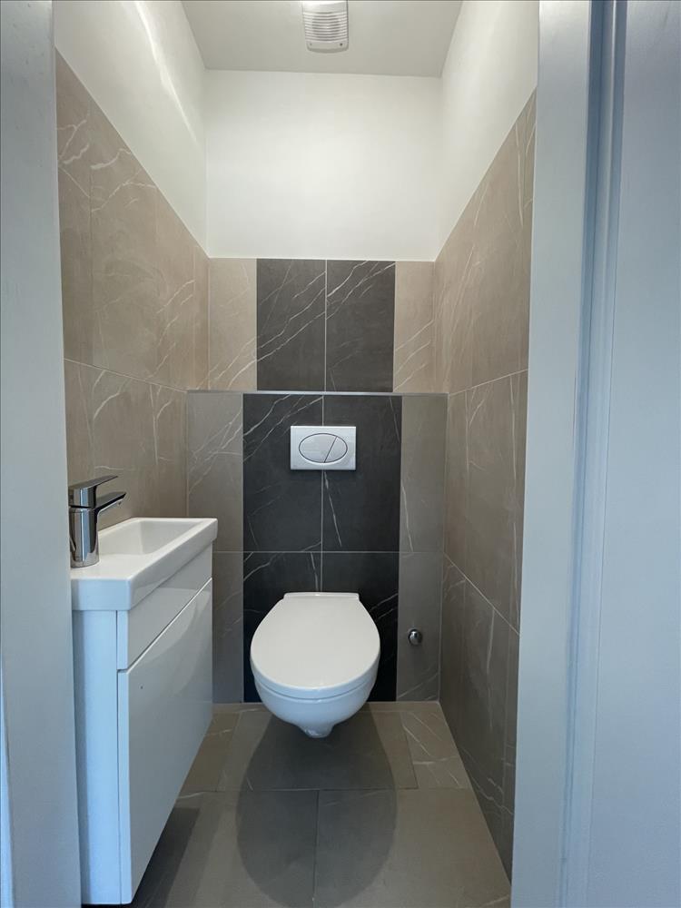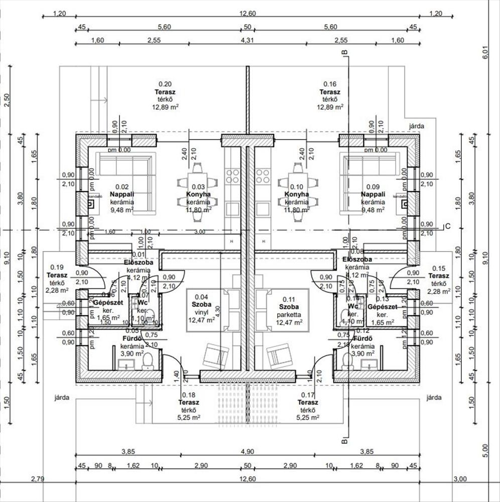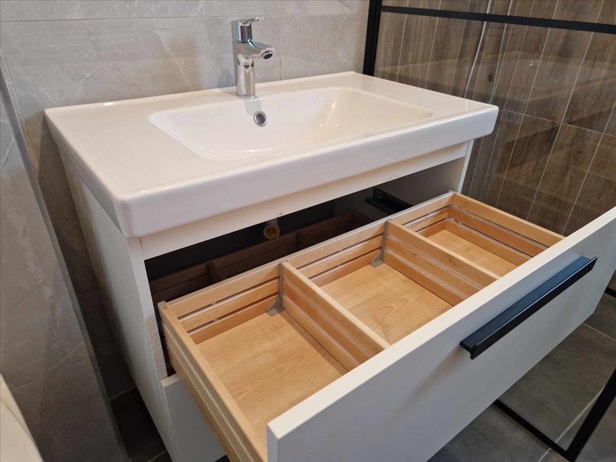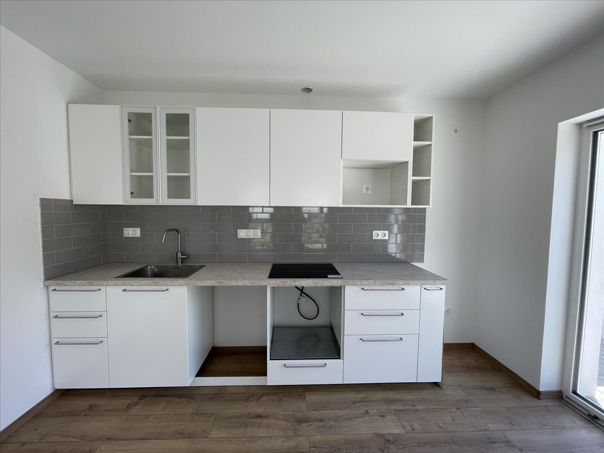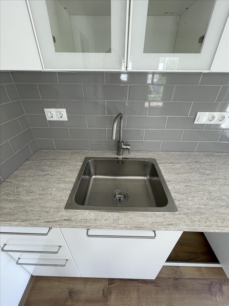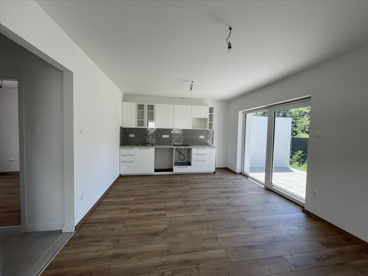 Az amerikai konyhás nappaliban minőségi Ikea konyhabútor található elektromos főzőlappal, nagyméretű kerámia mosogatótálcával és Kludi csapteleppel. a két lakás egyforma alaprajzzal rendelkezik: amerikai konyhás nappali, mely a terasz felé minőségi bukó-toló ajtóval nyílik, terasz- és fürdő-wc kapcsolatos hálószoba, előszoba, külön wc, valamint gépészeti helyiség, ahol a mosógép kiállás is megtalálható.
