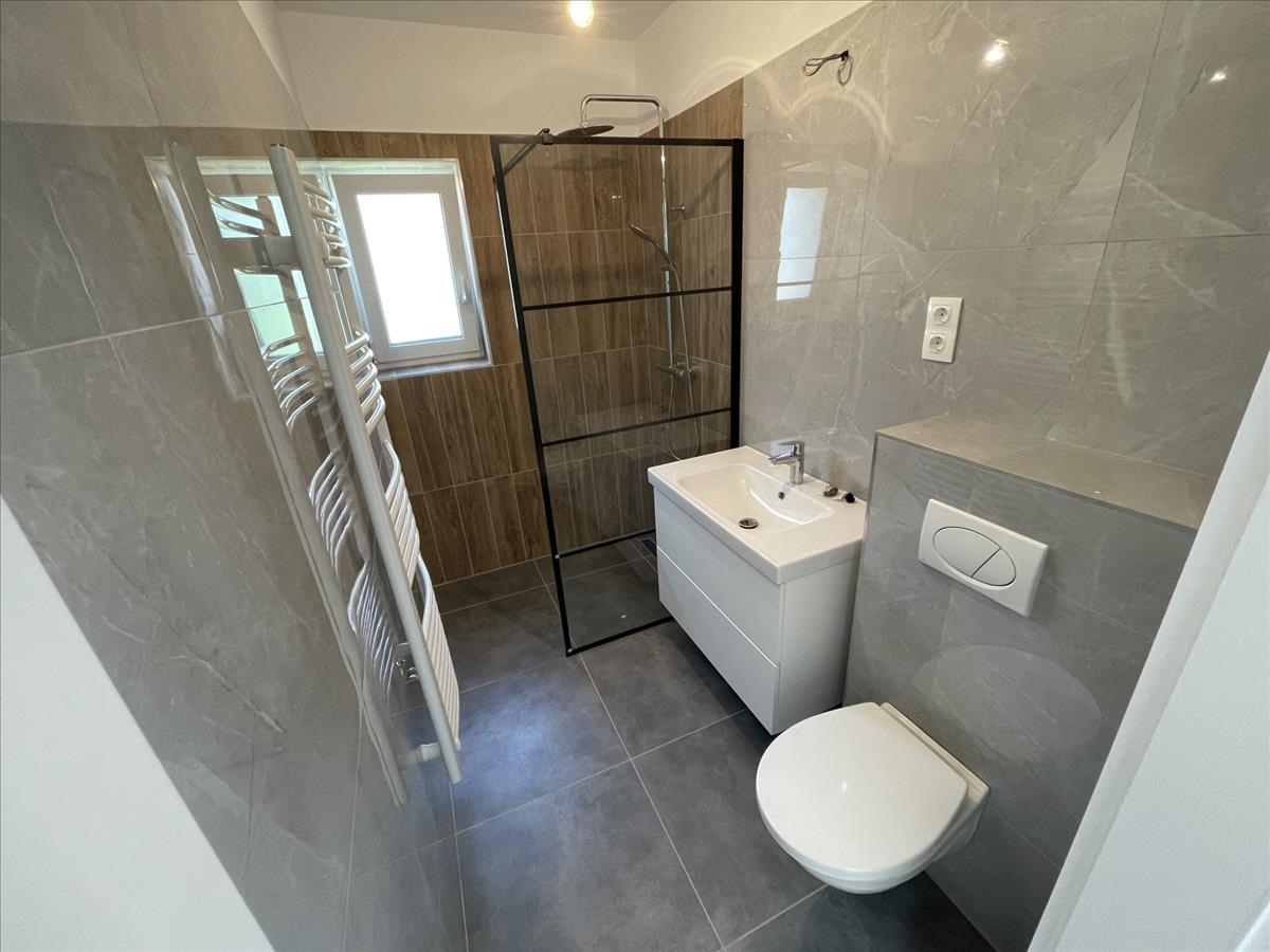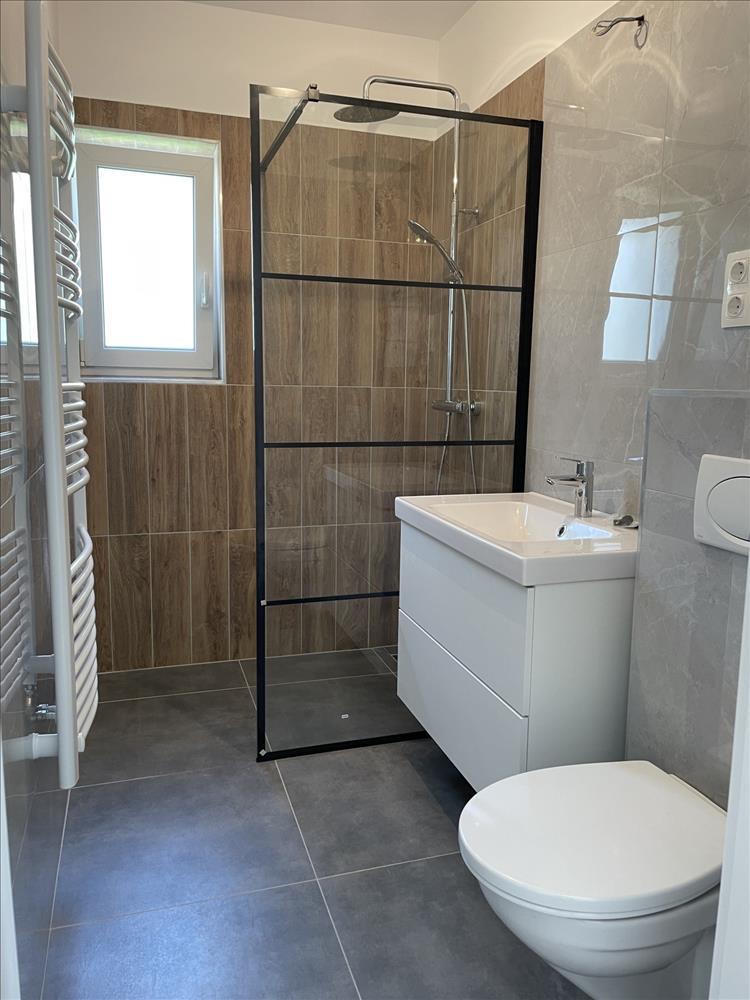 A tágas fürdőben esőztetős minőségi épített zuhany került kialakításra.