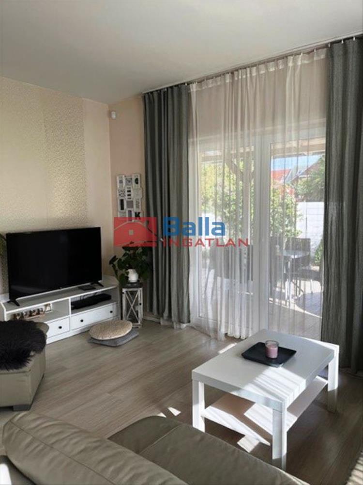A lakás elrendezése: földszintjén előszoba, konyha+étkező+nappali, kijárat a fedett 22 m2-es teraszra, kamra, fürdőszoba+Wc.