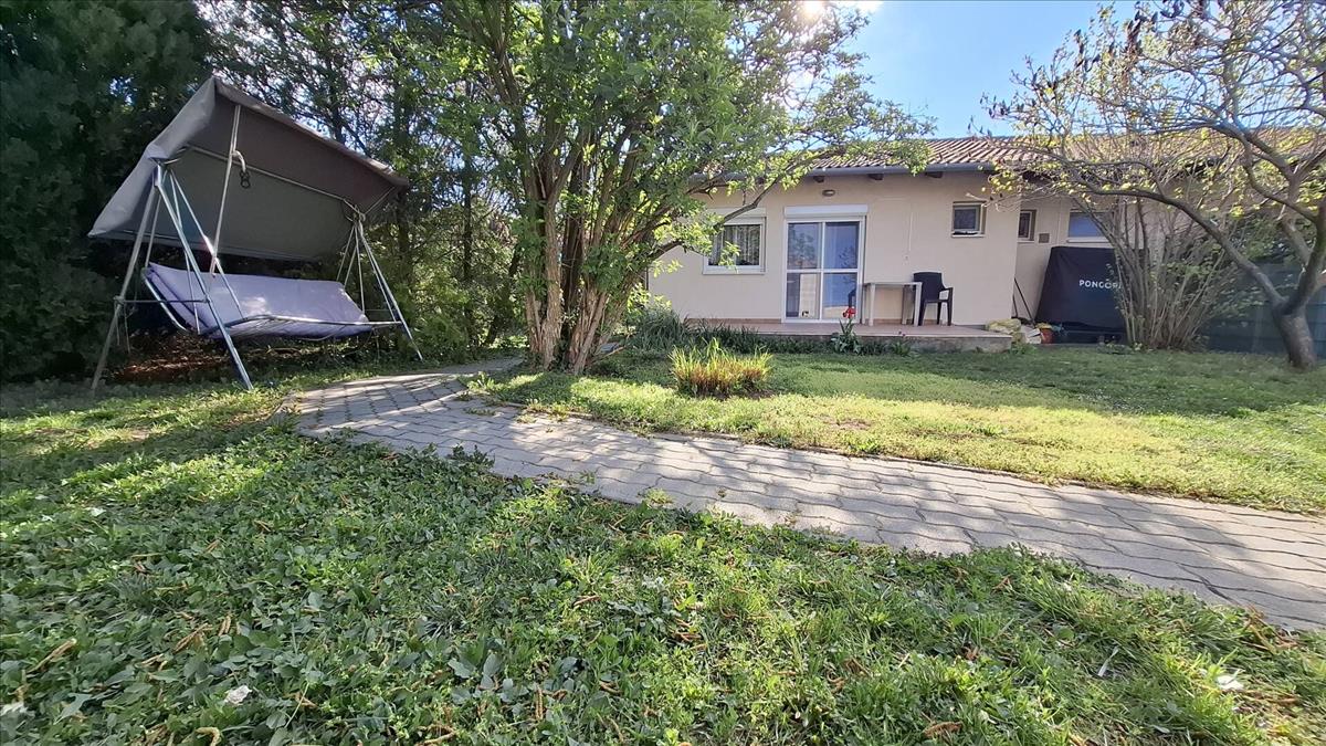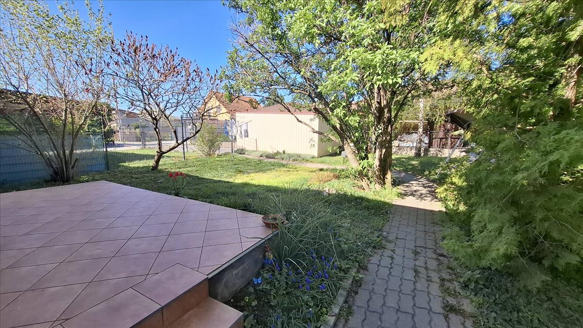A 340 m²-es kert ideális családi pihenésre, kertészkedésre vagy akár gyerekek számára is.