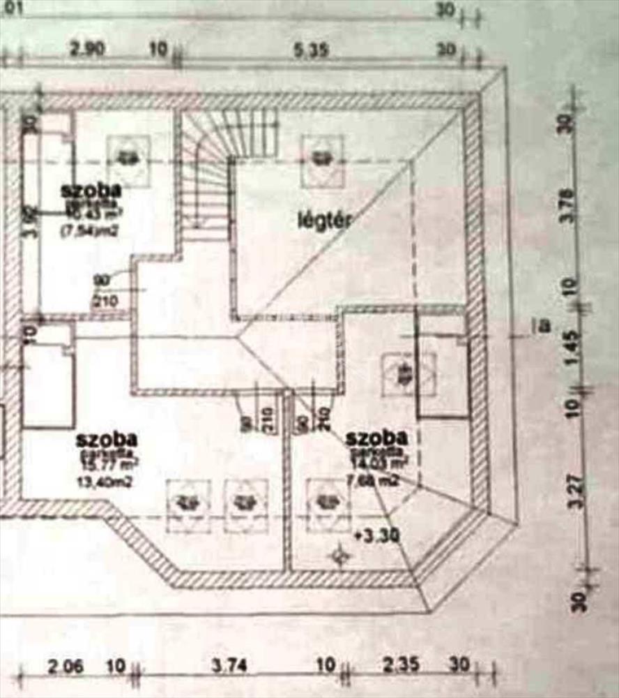 szoba 13, 4m2, szoba 7, 7m2, szoba 7, 6m2, közlekedő-előtér 12m2, mosdó-zuhanyzó 7, 15m2, toalett 2, 64m2, gardrób 12, 76m2;