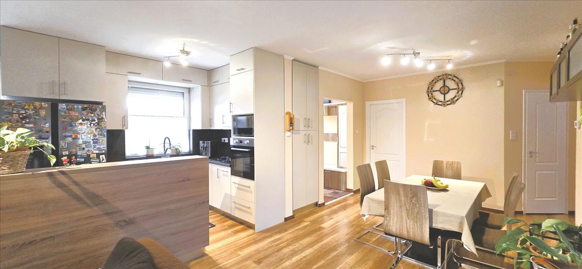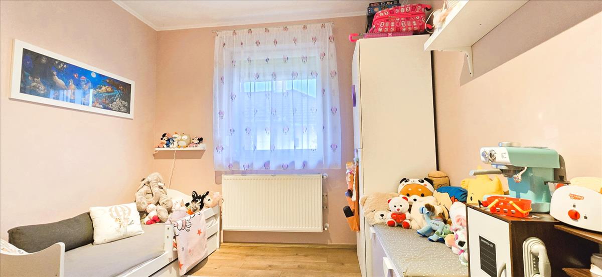 Központi része a háznak a nappali-étkező–konyha ( 38 m2 ), vadonatúj konyhabútorral, mely a vételár részét képezi. Három hálószoba nyílik a közlekedőből (8, 1; 9, 6 és 10, 7 m2)
