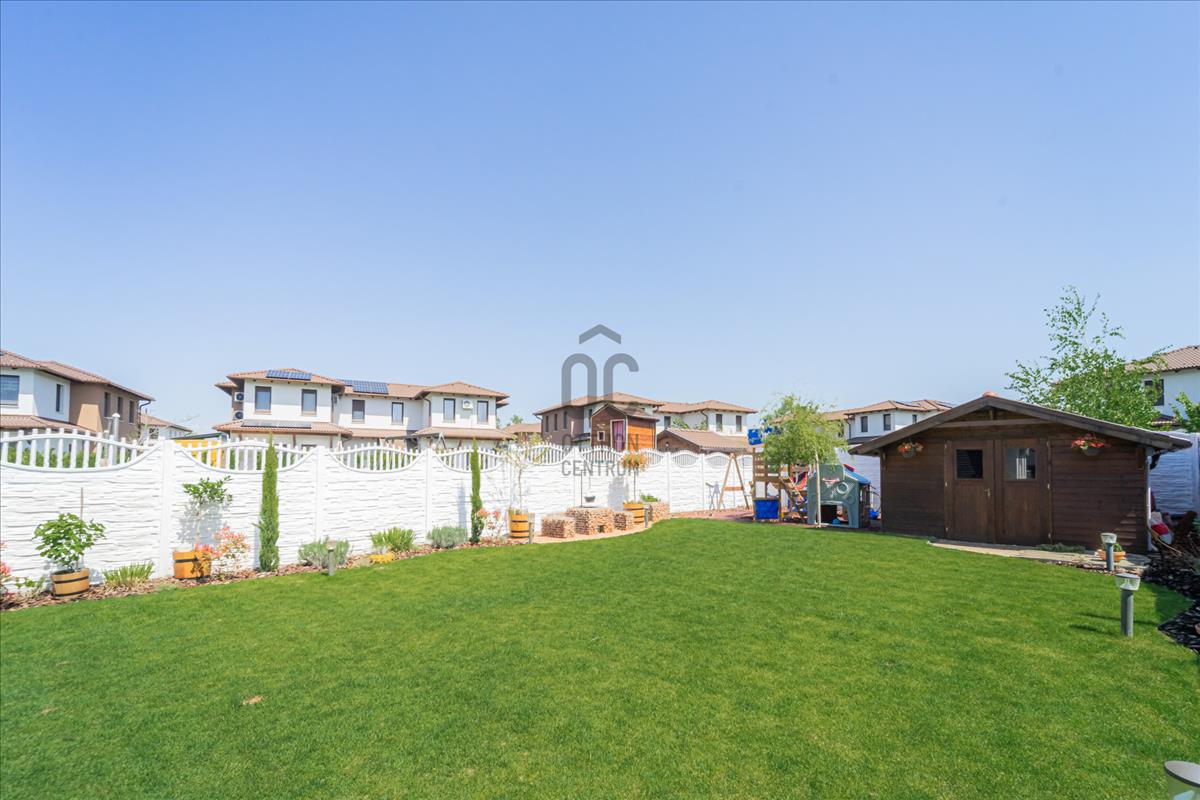 A gyepszőnyegezett kert közvetlen kapcsolatban áll az amerikai konyhás nappalival és a terasszal, ideális helyszínt teremtve családi összejövetelekhez és baráti grillezésekhez. a gondosan karbantartott kert saját fúrt kútból nyert vízzel működő automata öntöző és csepegtető rendszerrel rendelkezik, így mindig zöld és virágzó marad. a ház és a telek déli tájolású, így egész nap éri a nap.