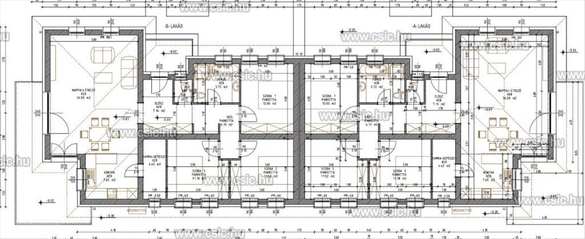 - elrendezése: amerikai konyhás nappali-étkező, 3 hálószoba, fürdő, wc, kamra+vendég WC