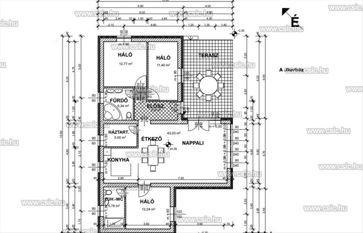 Az A. Ikerház nappali + 3 hálószobás és a saját, önálló kert része 320 m2.