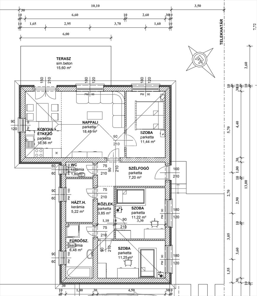 A hőszigetelés a homlokzaton 15 cm eps, a padlóban 10 cm lépésálló, a födémen 25 cm ásványgyapot.