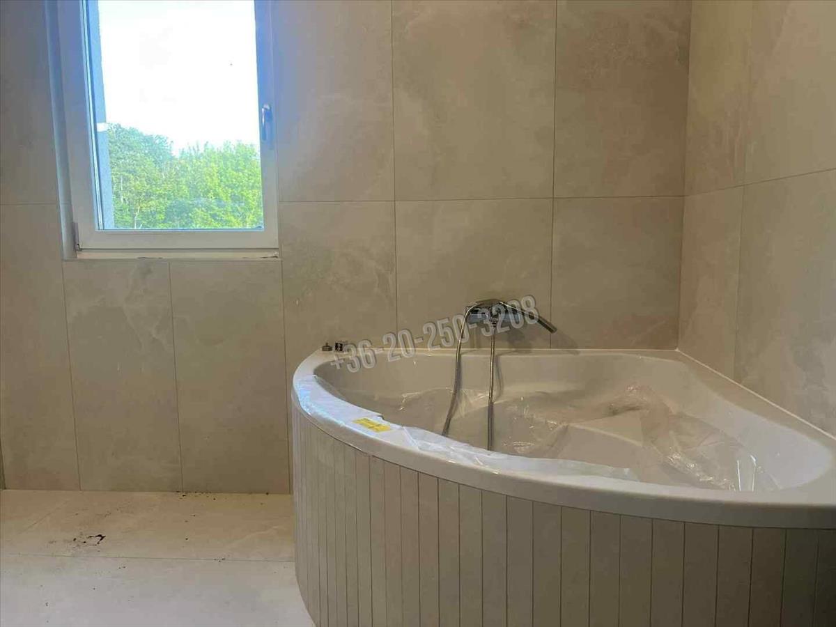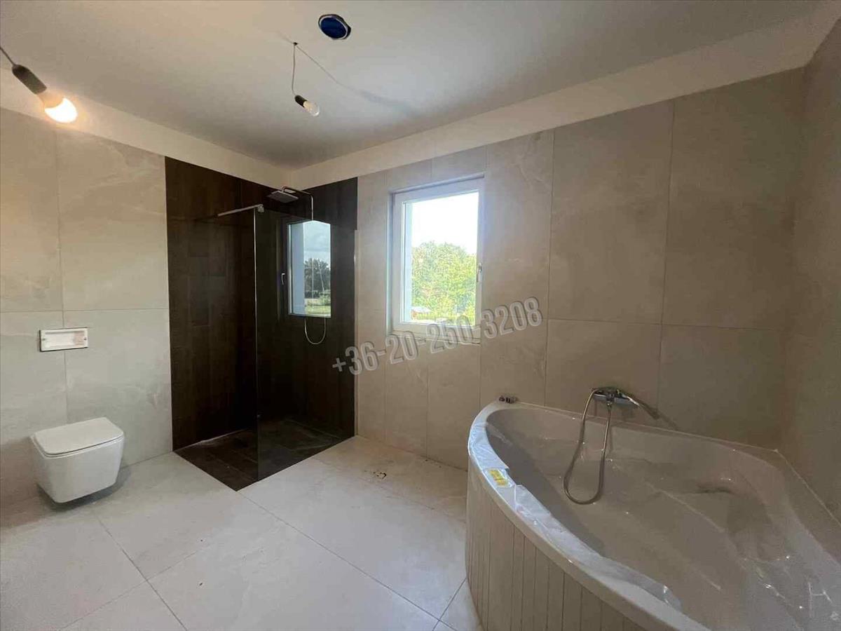 Két szinten, 125 m2-en amerikai konyhás nappali + 4 hálószoba, két fürdőszoba, kamra, háztartási helyiség került kialakításra. Térkövezett kocsibeálló, melynek mérete bővíthető igény szerint, akár fedetté alakítható.
