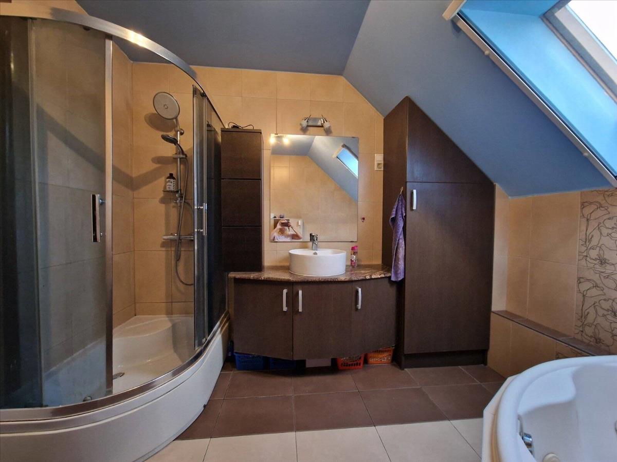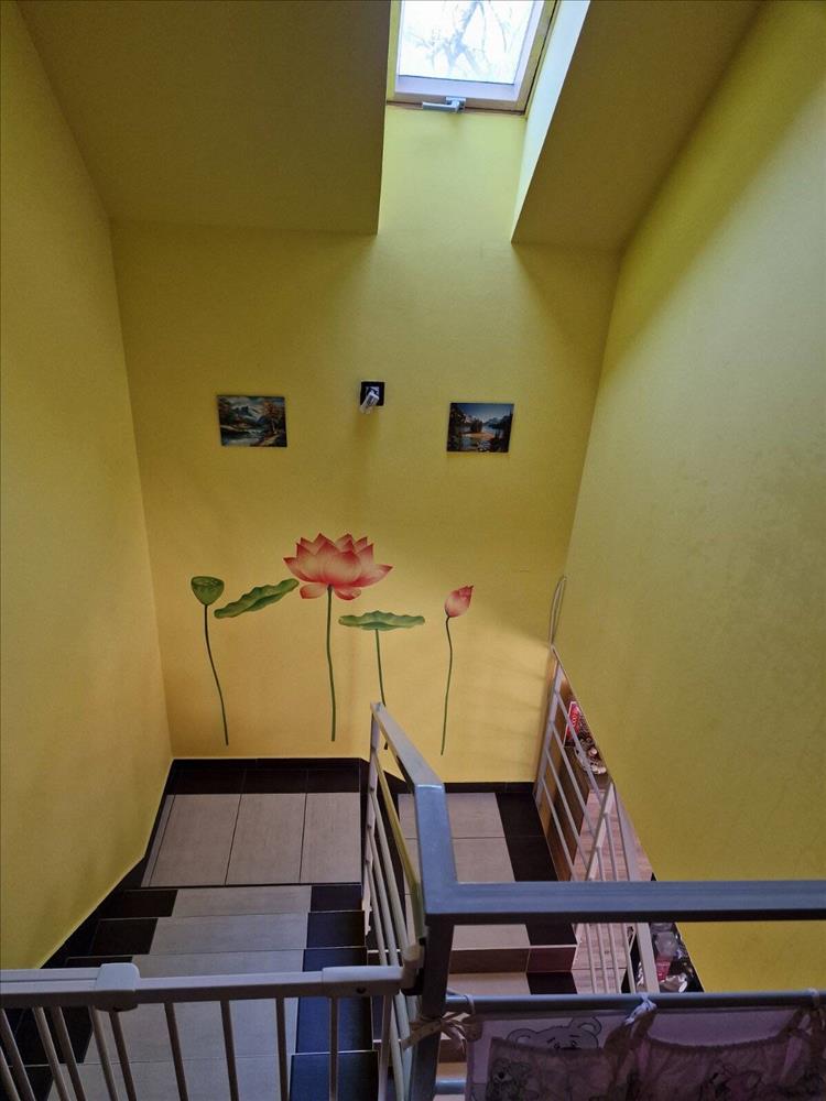 Az emeleten három különnyíló hálószoba biztosítja a privát életteret, valamint a káddal és zuhanyzóval is felszerelt, modern fürdőszoba szintén rendelkezésre áll.
