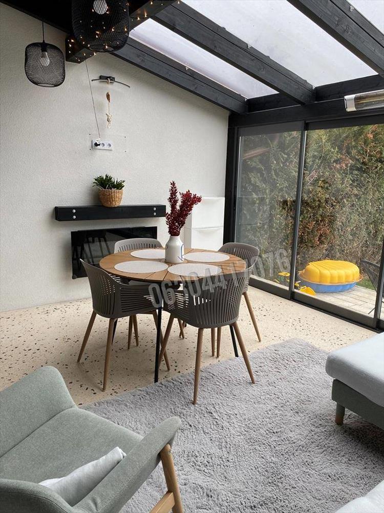 A lakás egyik kiemelkedő előnye a 16 m²-es, teljesen zárt terasz, amely nagy üvegfelületeinek köszönhetően világos, egész évben használható élettér. Padlófűtéssel, kandallóval és elektromos fűtési lehetőséggel is ellátott, ugyanakkor a nappalitól teljesen leválasztható – ideális pihenéshez, dolgozószobának vagy télikertnek.
