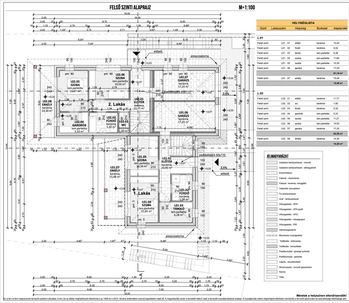 Az alsó szinten tágas amerikai konyhás nappali kapott helyet közvetlen teraszkapcsolattal, egy hálószoba, tágas fürdőszoba/háztartási helyiség, gépészeti helyiség, valamint tároló és kamra. a felső szinten a garázsból közvetlen átjárás biztosított a lakótérbe, ahol további két hálószoba, fürdőszoba, külön toalett, valamint gardrób/dolgozó biztosítja a kényelmet és a praktikus mindennapokat. a tágas erkélyre az egyik hálószobából, valamint a gardrób/dolgozó szobából is kiléphetünk.