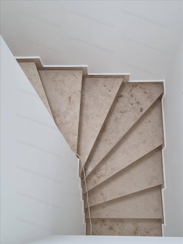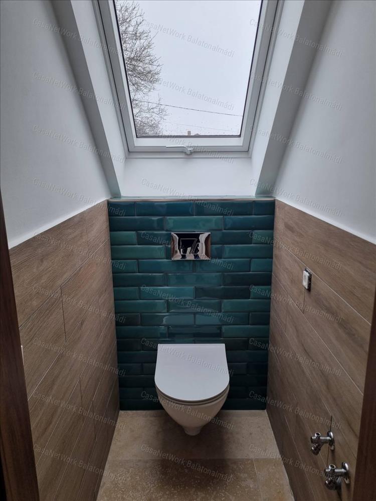 - emelet: háztartási helyiség, egy toalett, három szoba rálátással a környező tájra és a Balatonra