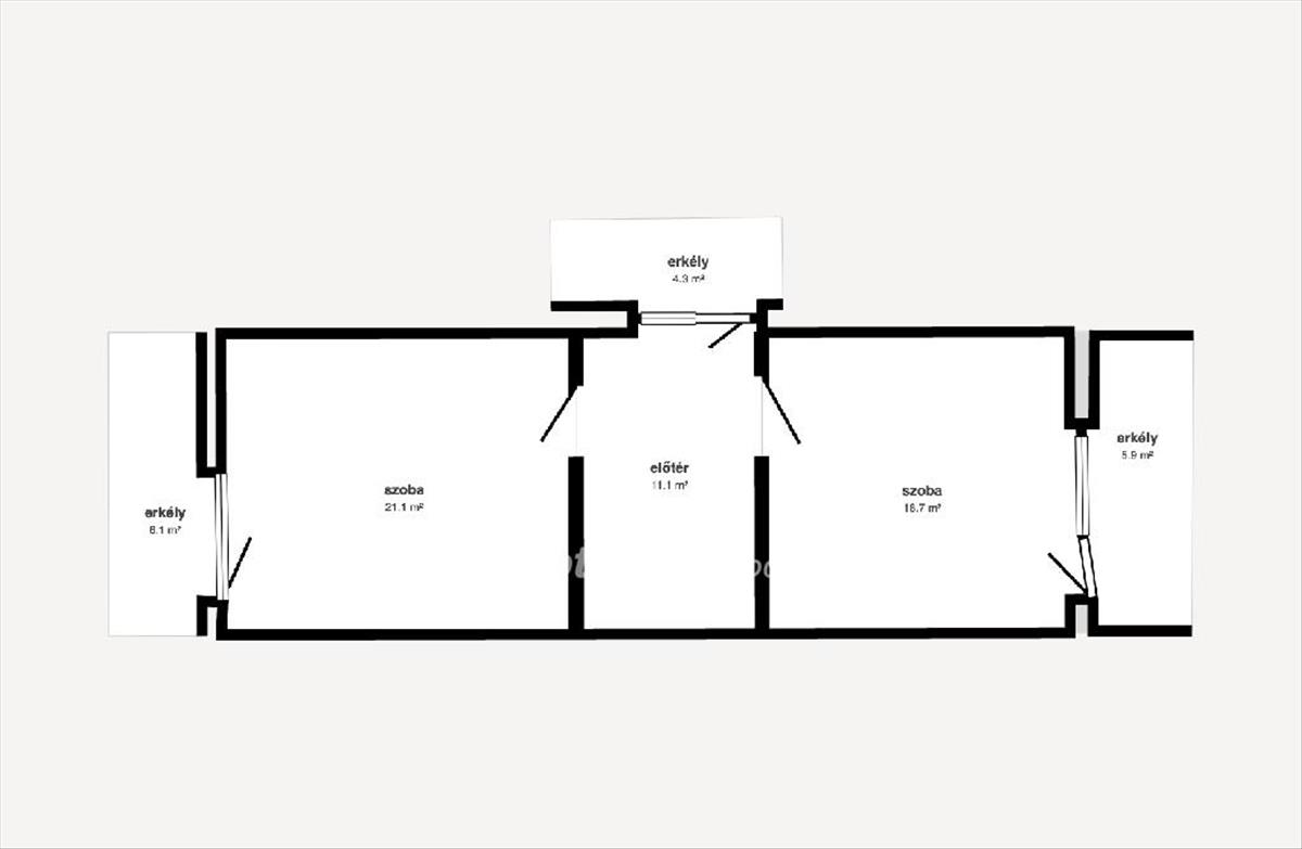 Az ingatlan három nagy méretű szobával, konyhával, fürdőszobával és külön WC-vel rendelkezik. Az emeleti szinten három erkély található, amelyek világosabbá és kellemesebbé teszik a lakótereket.