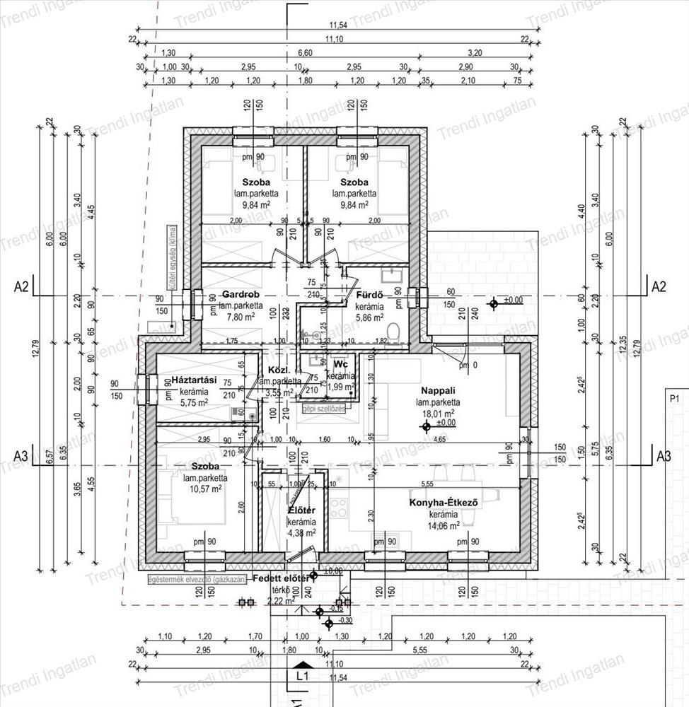 A remek elosztású házban amerikai konyhás nappali, 3 szoba, fürdőszoba, háztartási helyiség, külön wc, előtér, közlekedő található.