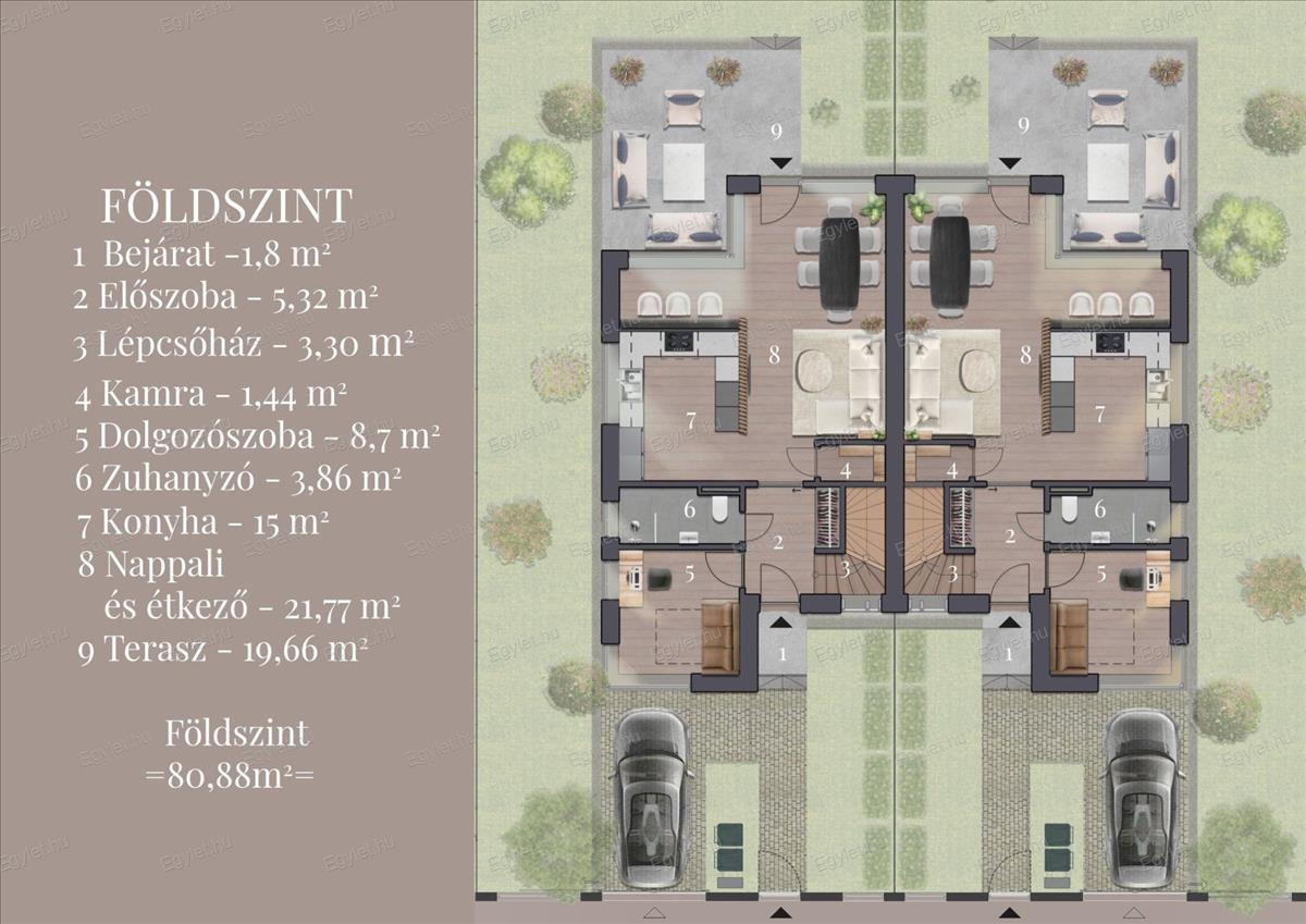 Megvételre kínálunk Tordas egyik legszebb részén, egy HÓSZIVATTYÚS, klímás, új építésű, teraszos, erkélyes, nettó 130 nm-es, 5 szobás, dupla fürdős ikerházat.